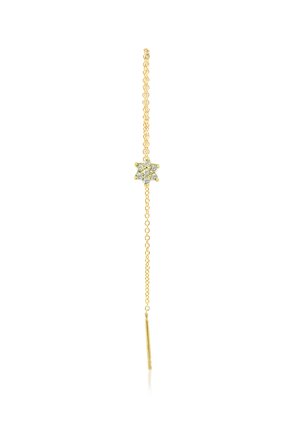 עגיל שרשרת עם תליון בצורת פרח משובץ 7 יהלומים