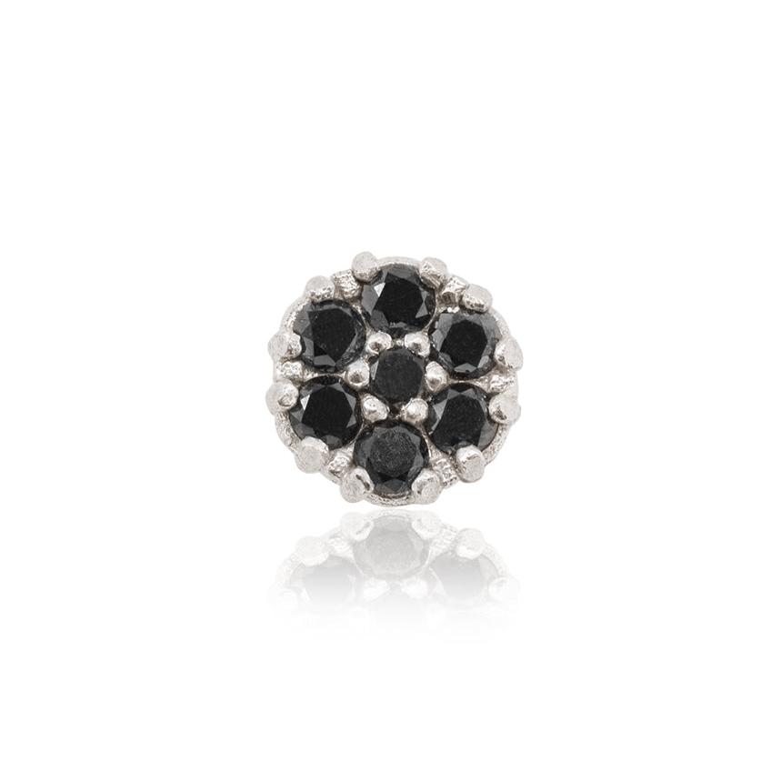 זוג עגילים צמודים בצורת פרח משובצים 7 יהלומים שחורים