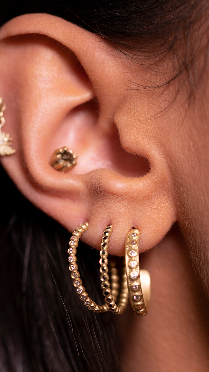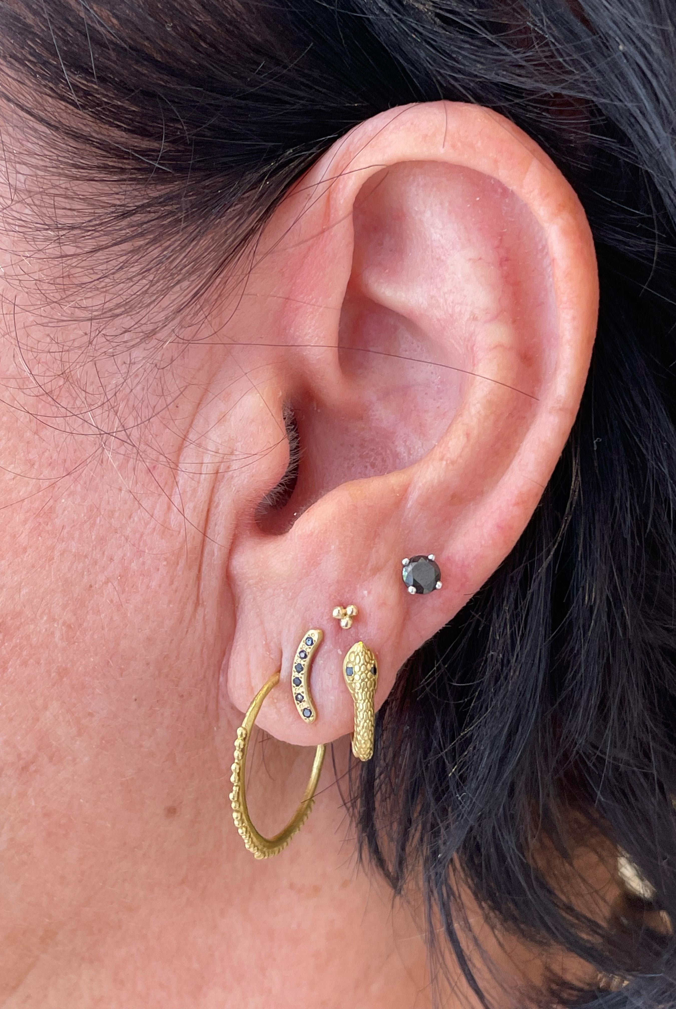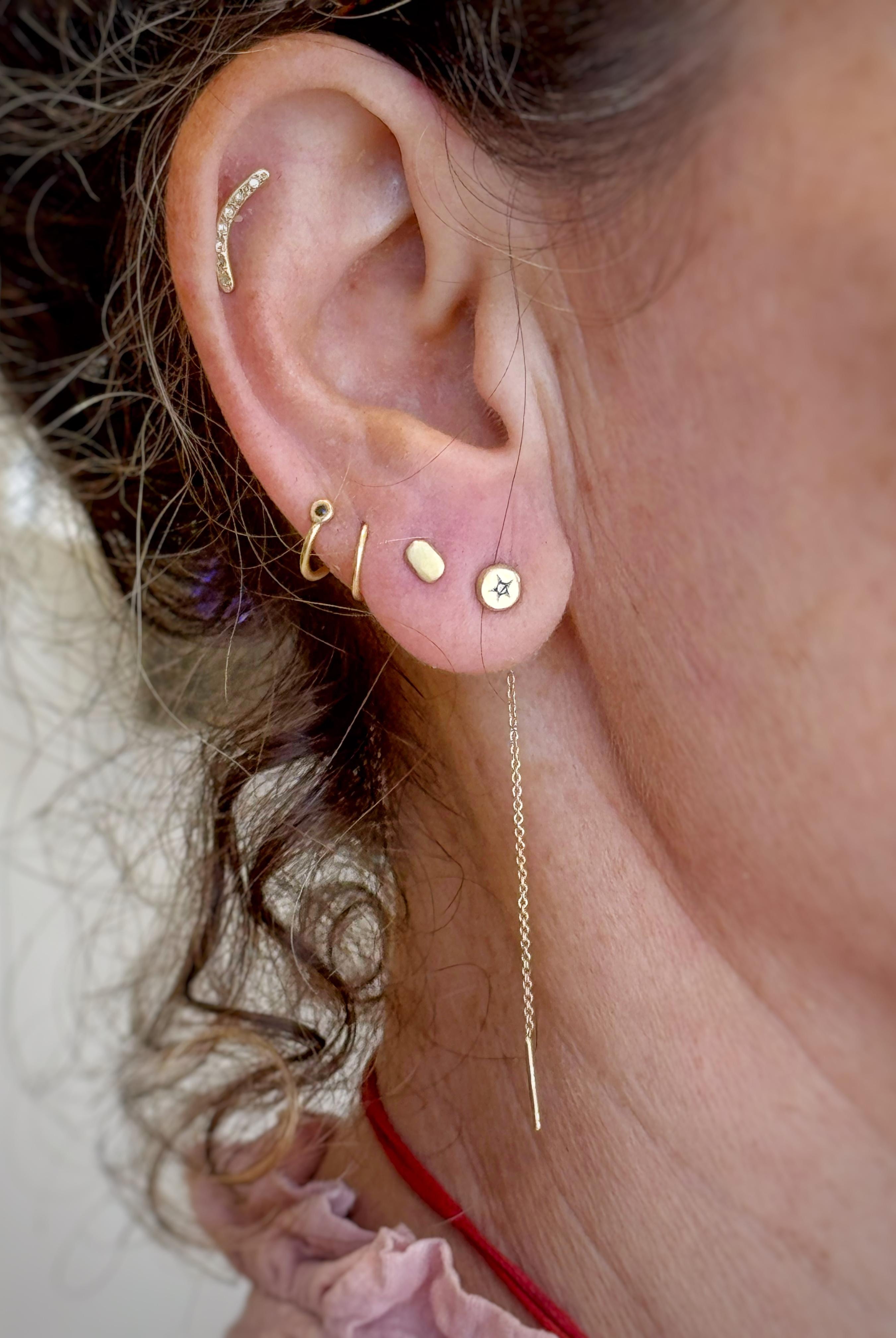 It’s always such a fun moment – I look at the ear, catch the style and personality, and figure out what will work best so you feel both beautiful and comfortable wearing your new earrings. Because most of my clients (and I’m the same!) never take them off – they sleep in them, shower, work out… and forget they’re even there.