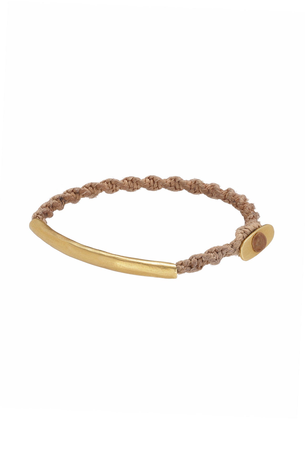 .צמיד צינור גדול עם כפתור אובלי עם צמיד ארוג מסובב