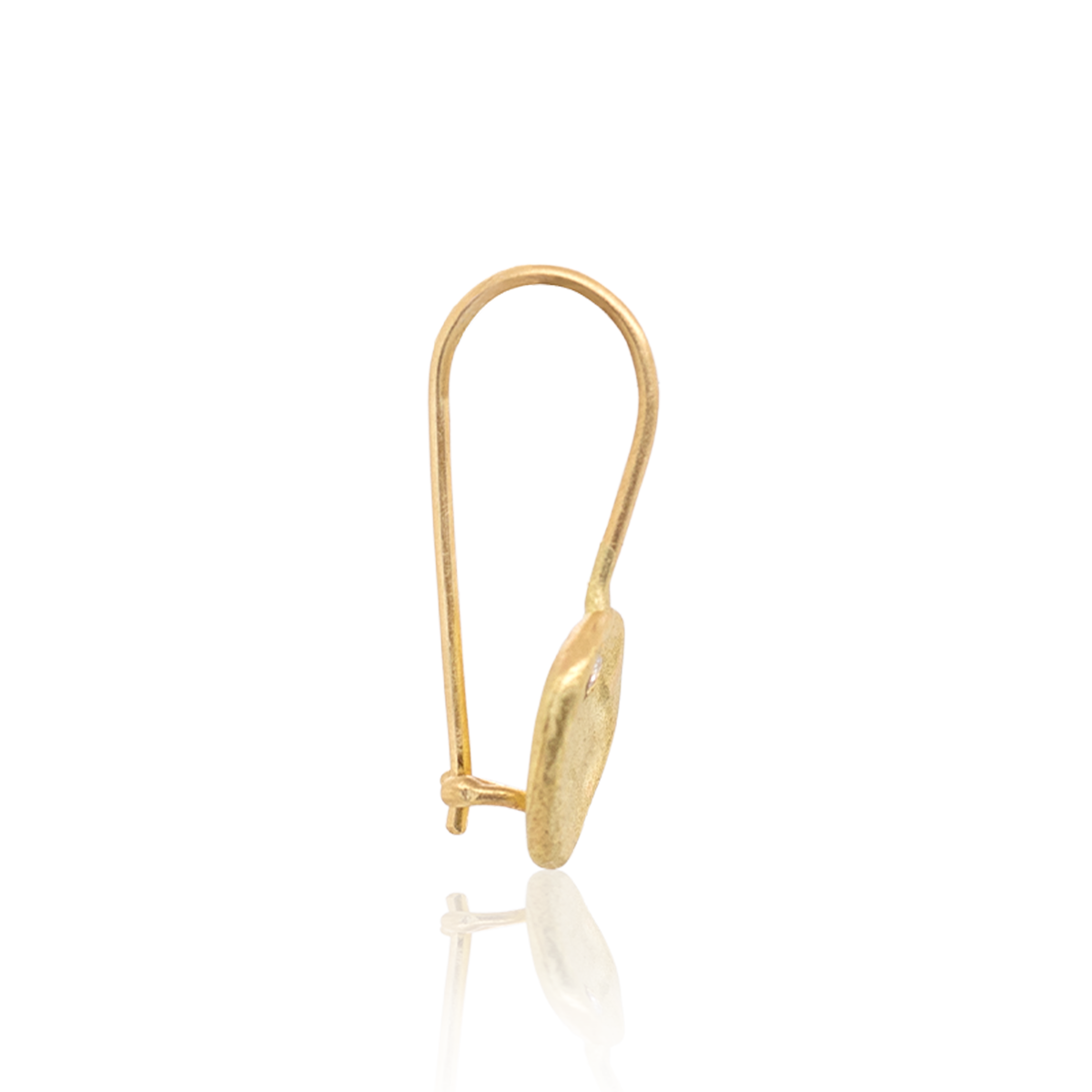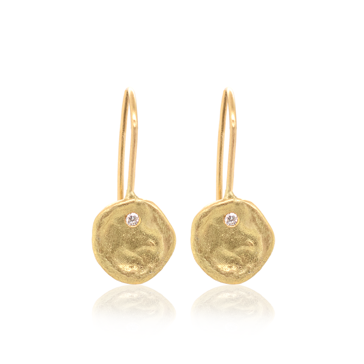 Dangling earrings with a gold pendant in the shape of a water vortex set with a white diamond