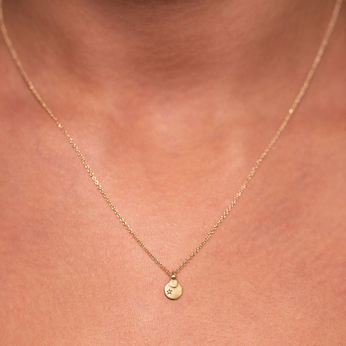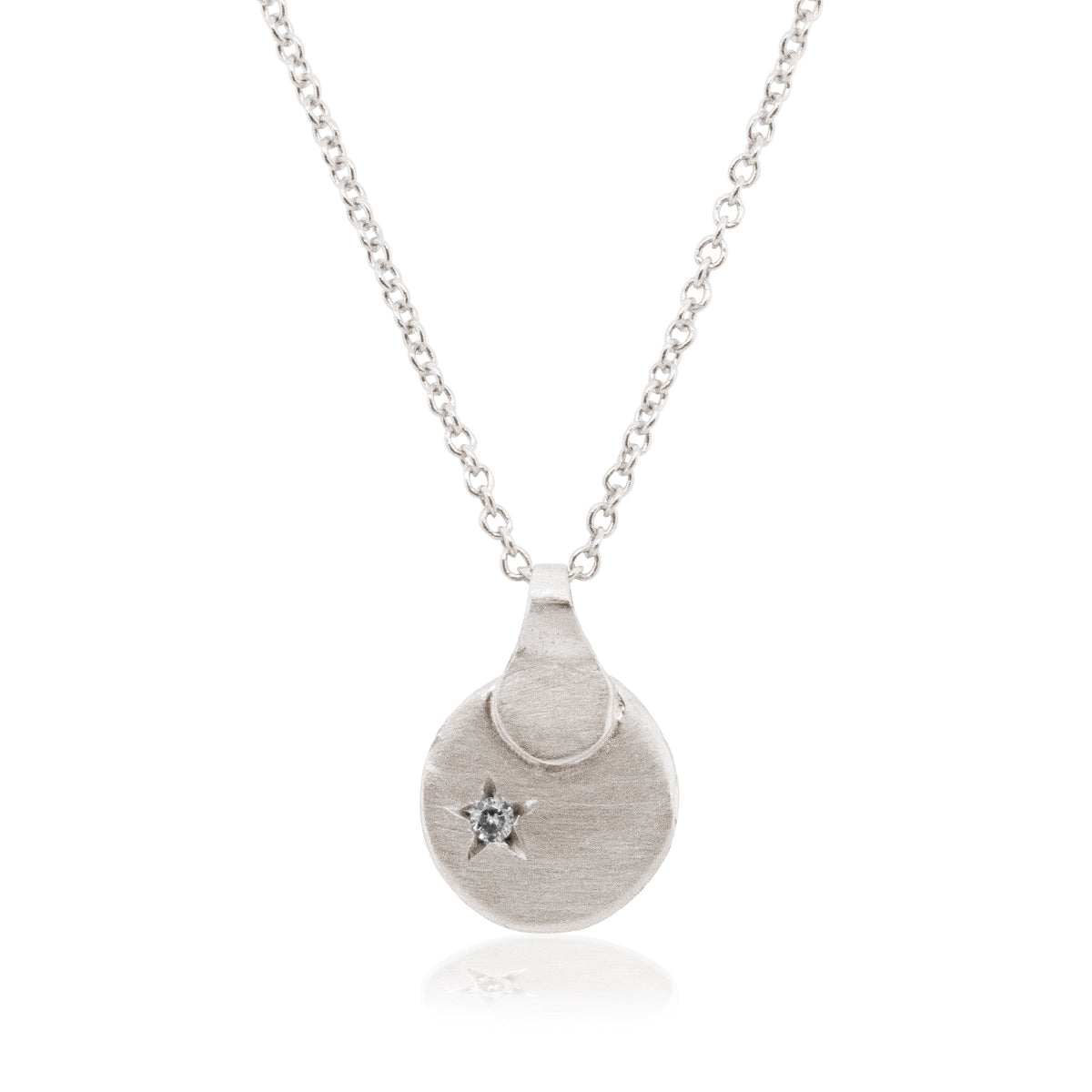 A gold necklace with a pita shaped pendant set with a star diamond.