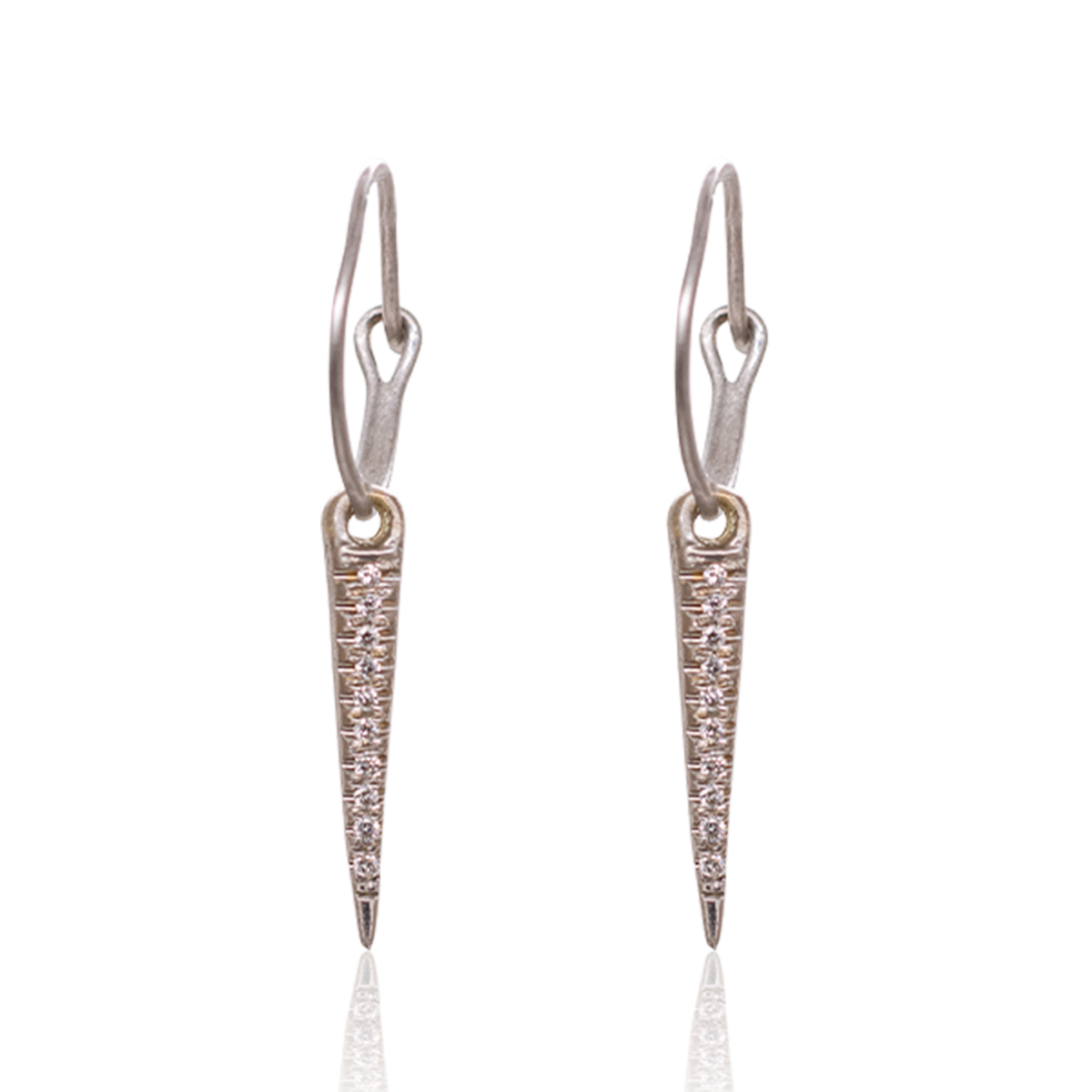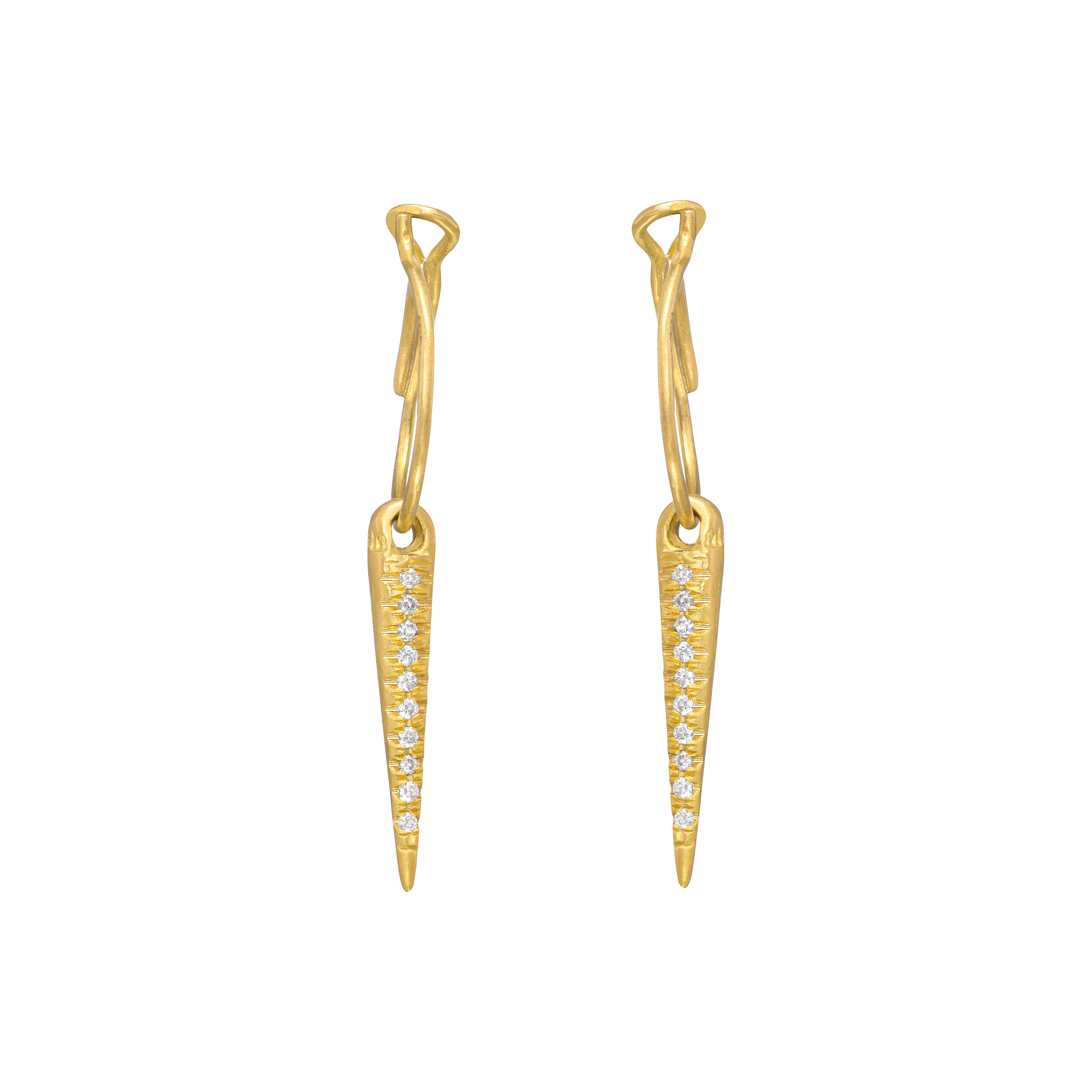 עגיל זהב עם תליון קונוס צר משובץ 10 יהלומים