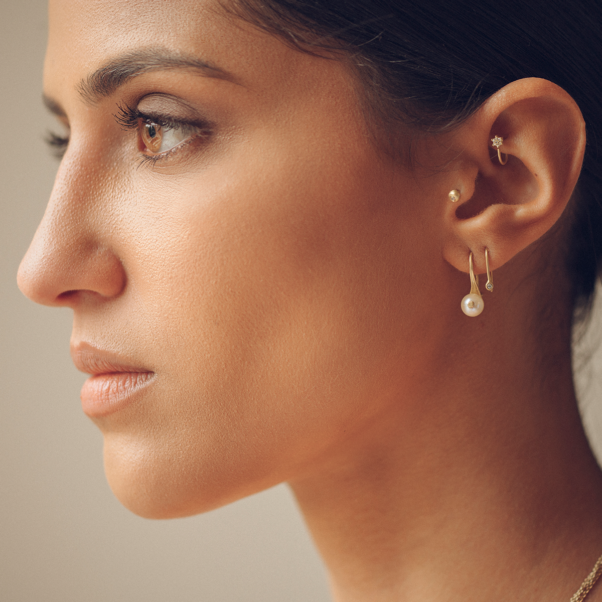 עגיל שרשרת צמוד עם תליון כוכב הצפון משובץ עם יהלום
