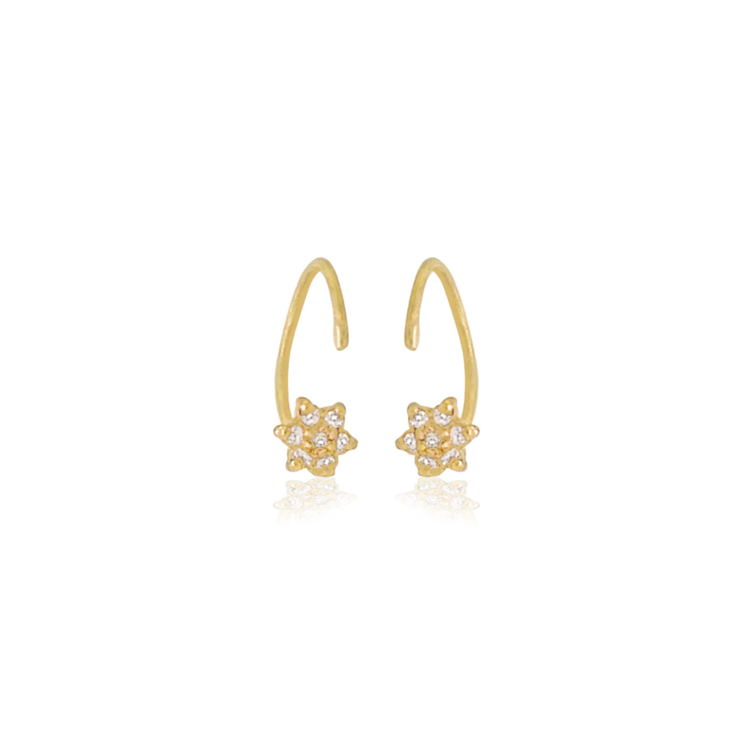 עגיל הליקס חישוק עם תליון פרחים משובץ 7 יהלומים. יכול להתאים גם לפירסינג באף