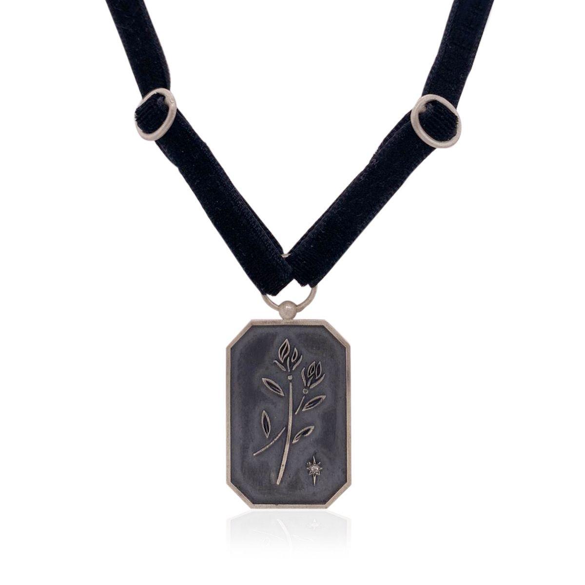 קולר קטיפה עם תליון פרחים עשוי כסף משובץ יהלום