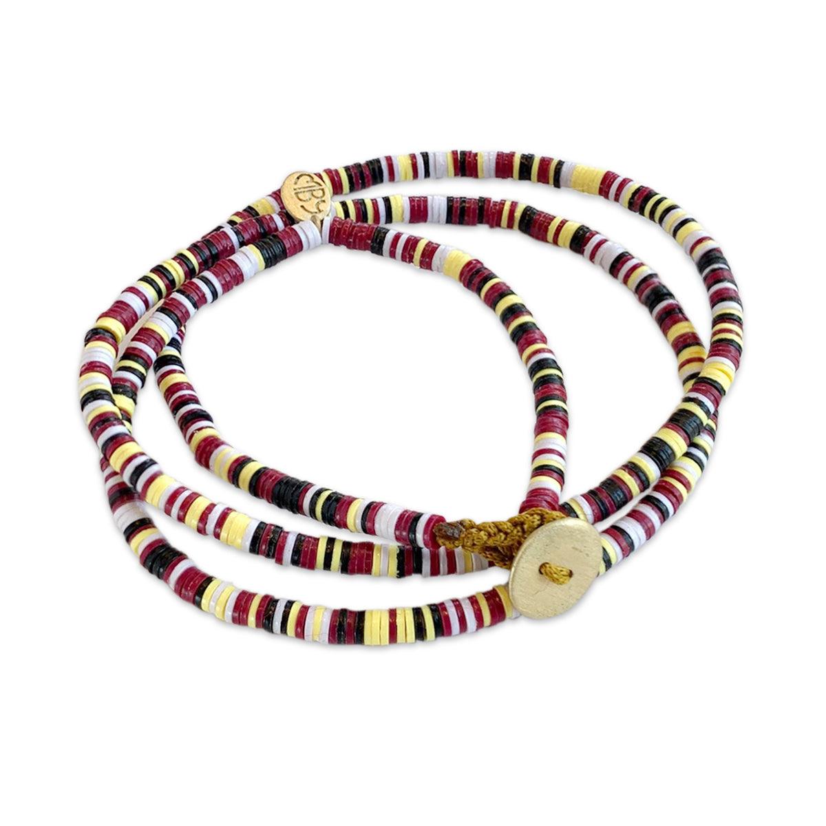 צמיד מתלפף שאפשר גם לענוד כשרשרת, עשוי מחרוזי ויניל צבעוניים וסוגר זהב