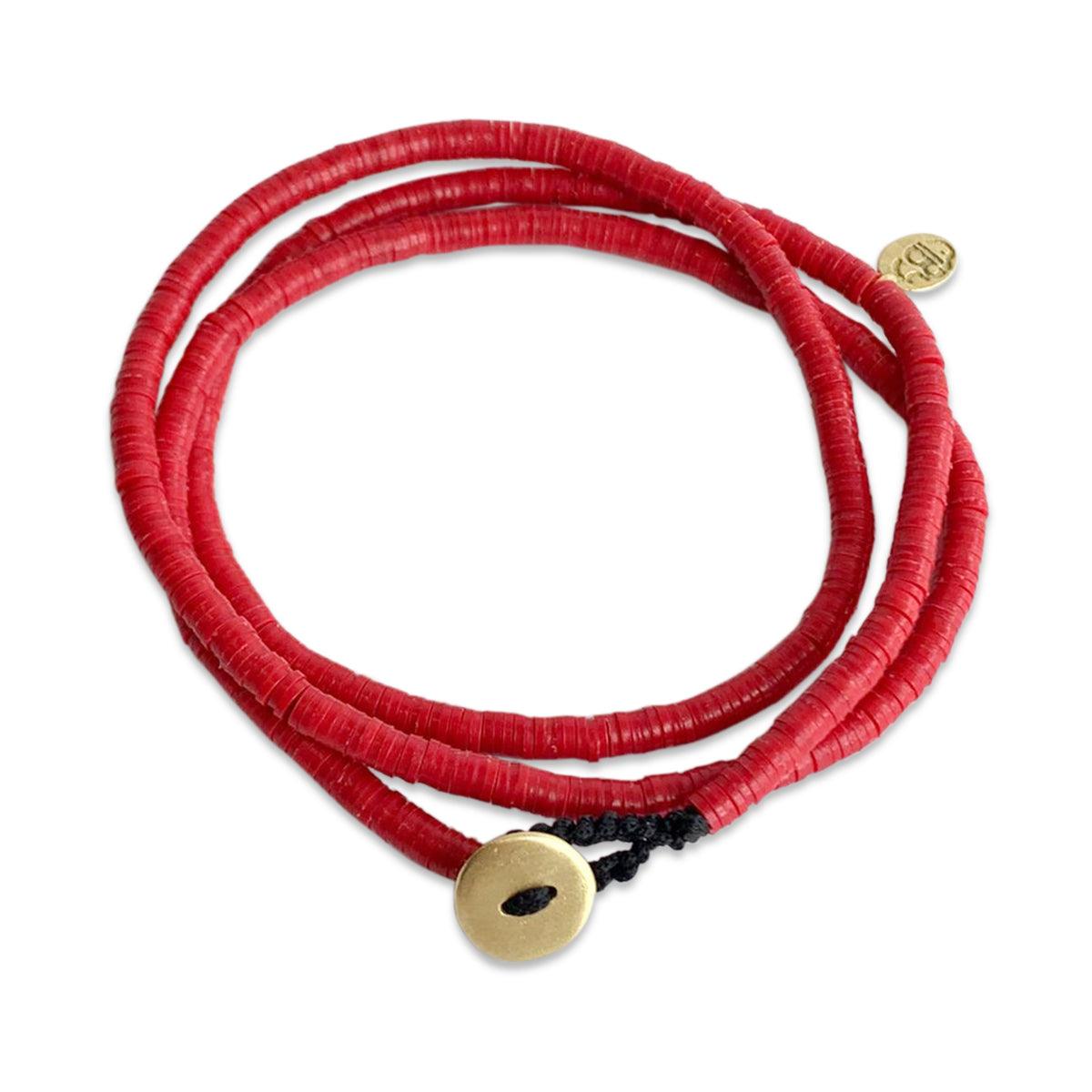 צמיד מתלפף שאפשר גם לענוד כשרשרת, עשוי מחרוזי ויניל צבעוניים וסוגר זהב