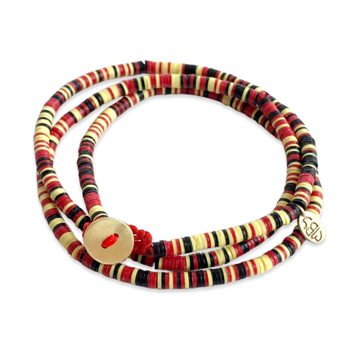 צמיד מתלפף שאפשר גם לענוד כשרשרת, עשוי מחרוזי ויניל צבעוניים וסוגר זהב