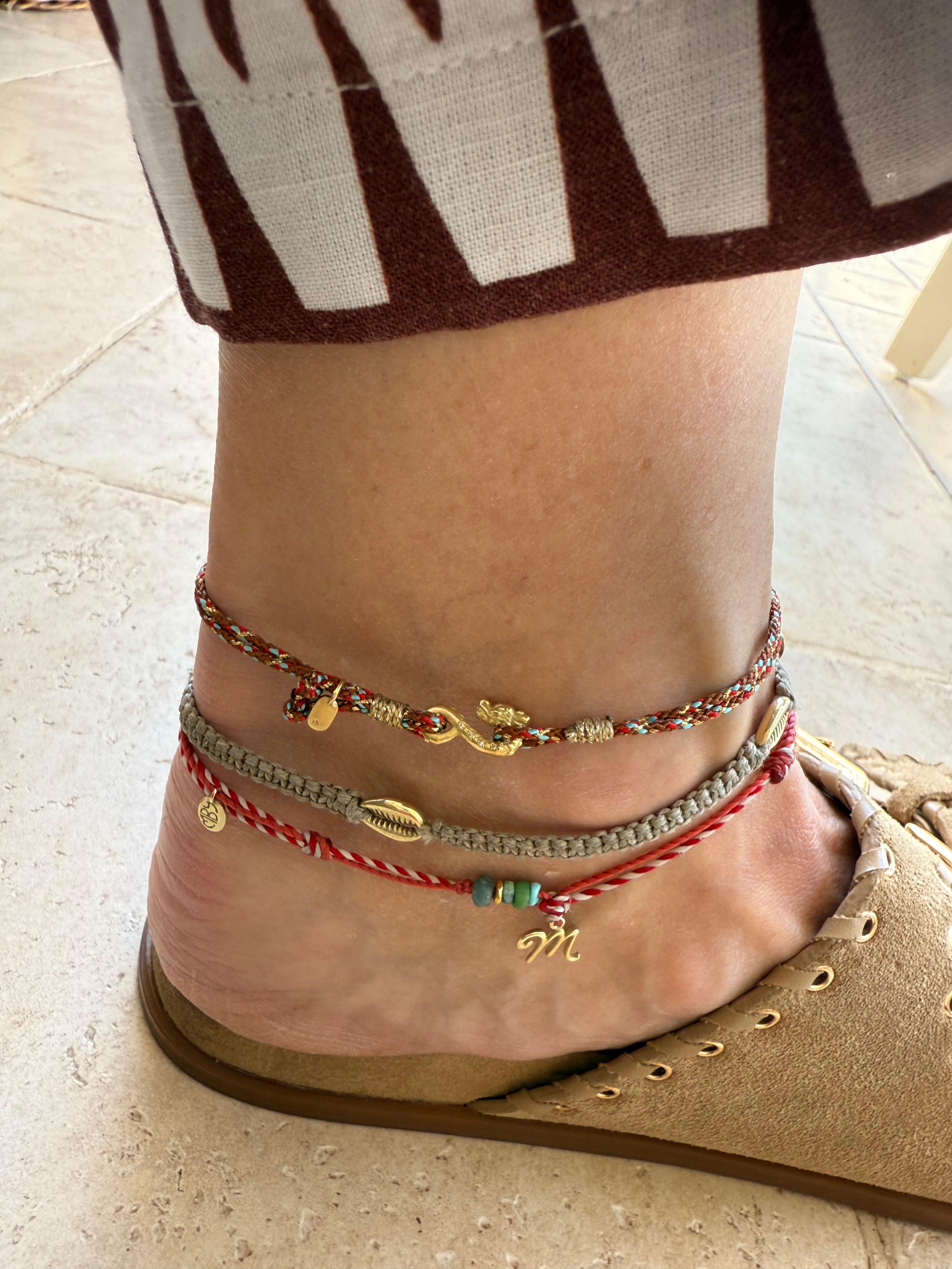 צמיד סוגר דרקון לרגל מכסף עם יהלומים שחורים משובצים במקום העיניים, חוט צבעוני ולוגו קטן