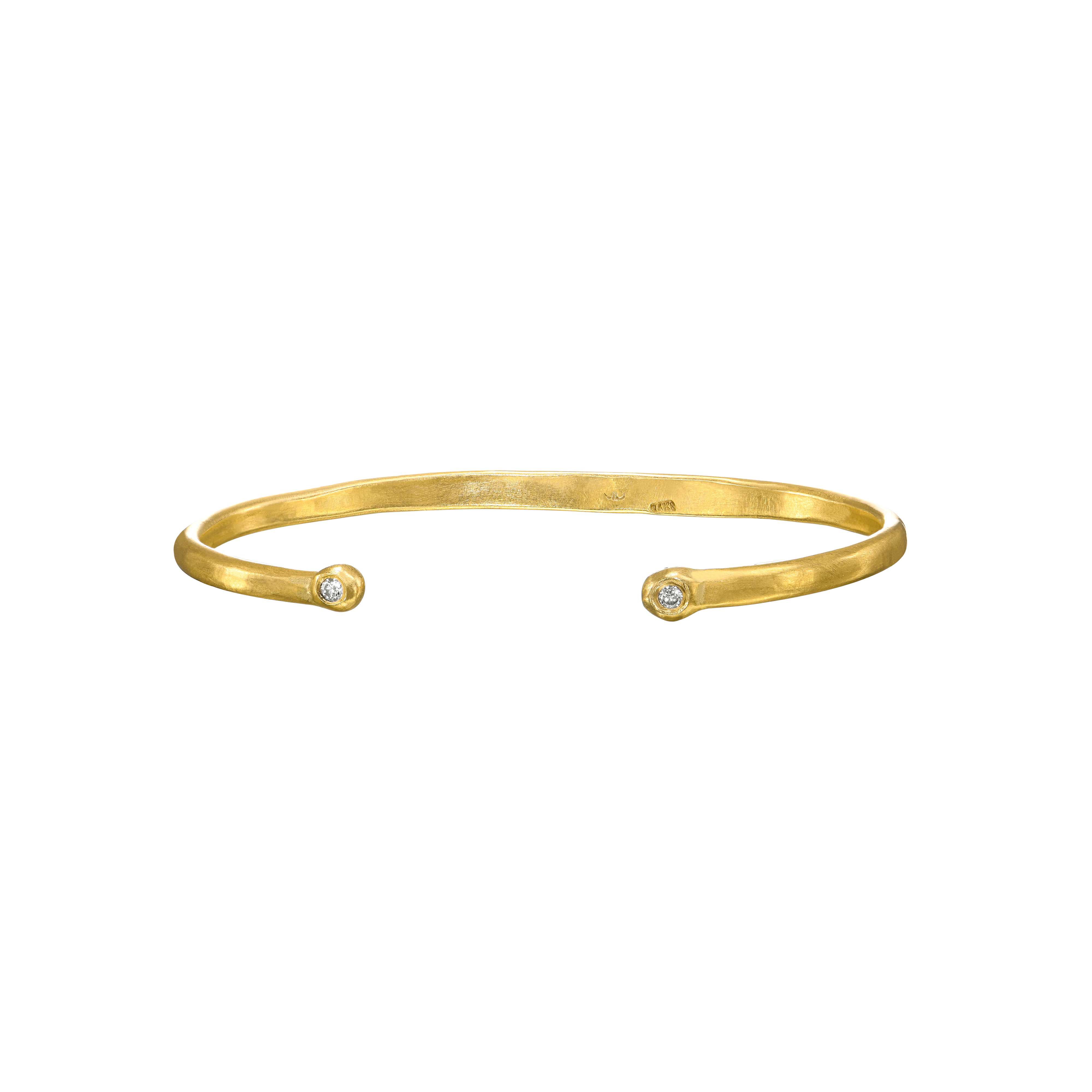 צמיד חישוק פתוח מתכוונן עשוי זהב 14 קראט, סופי הצמוד מעוצבים ככדור ומשובצים ביהלום והצמיד משובץ ב 3 יהלומים בצורת כוכבים