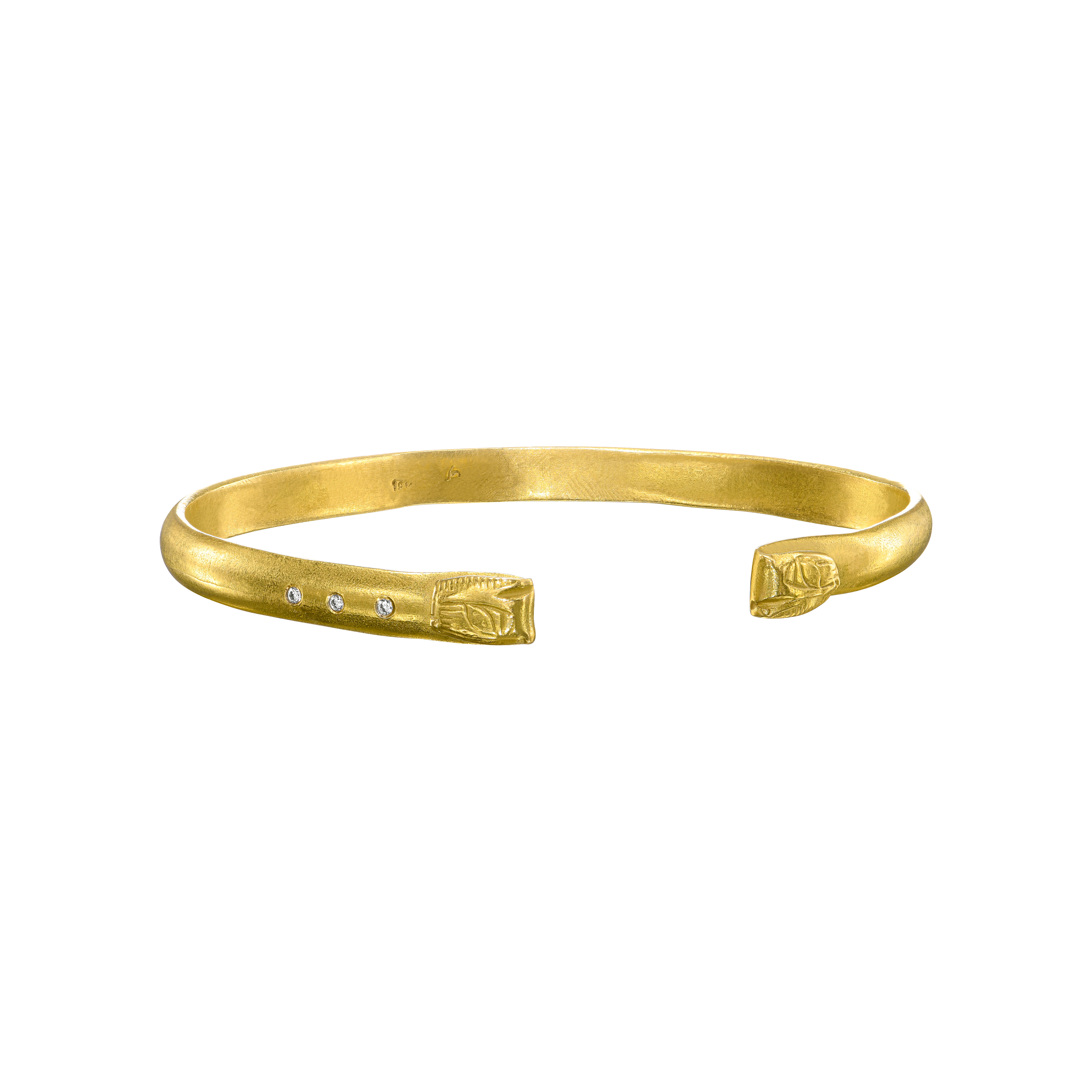 צמיד חישוק פתוח מתכוונן עשוי זהב, חריטת דוגמת אריות ושיבוץ 3 יהלומים