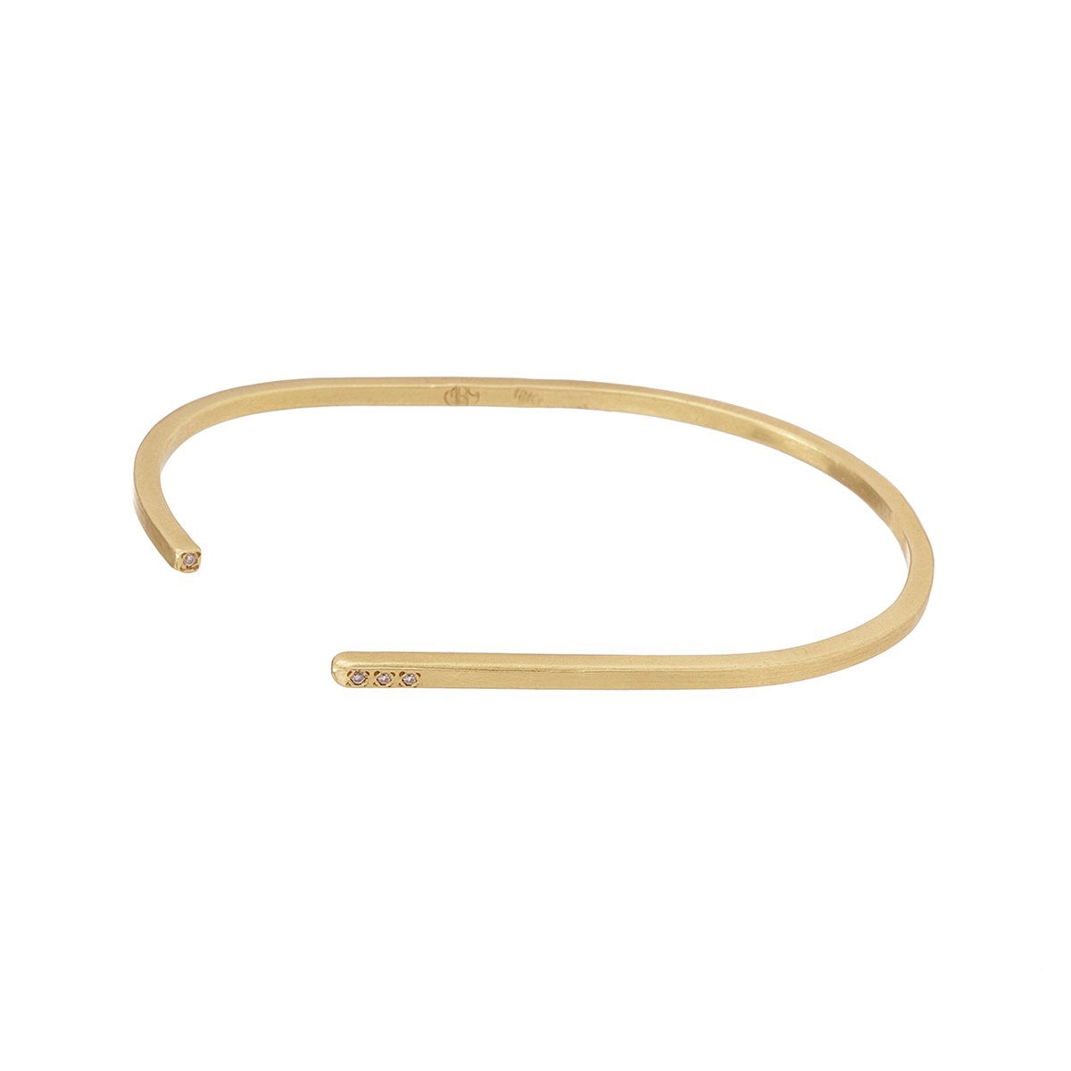 צמיד חישוק פתוח עשוי זהב 18 קראט, 3 יהלומים משובצים בצד אחד ויהלום אחד בקצה השני
