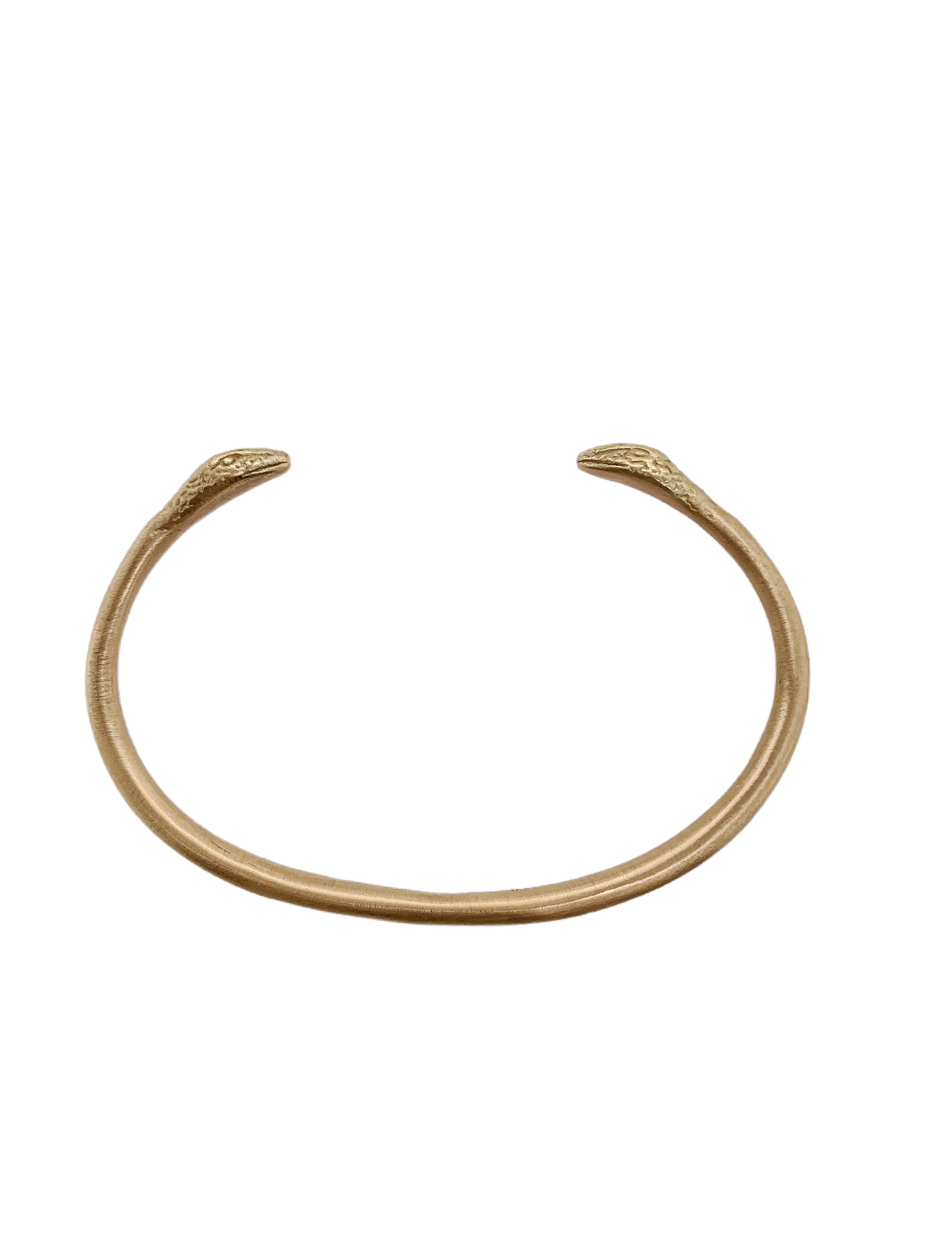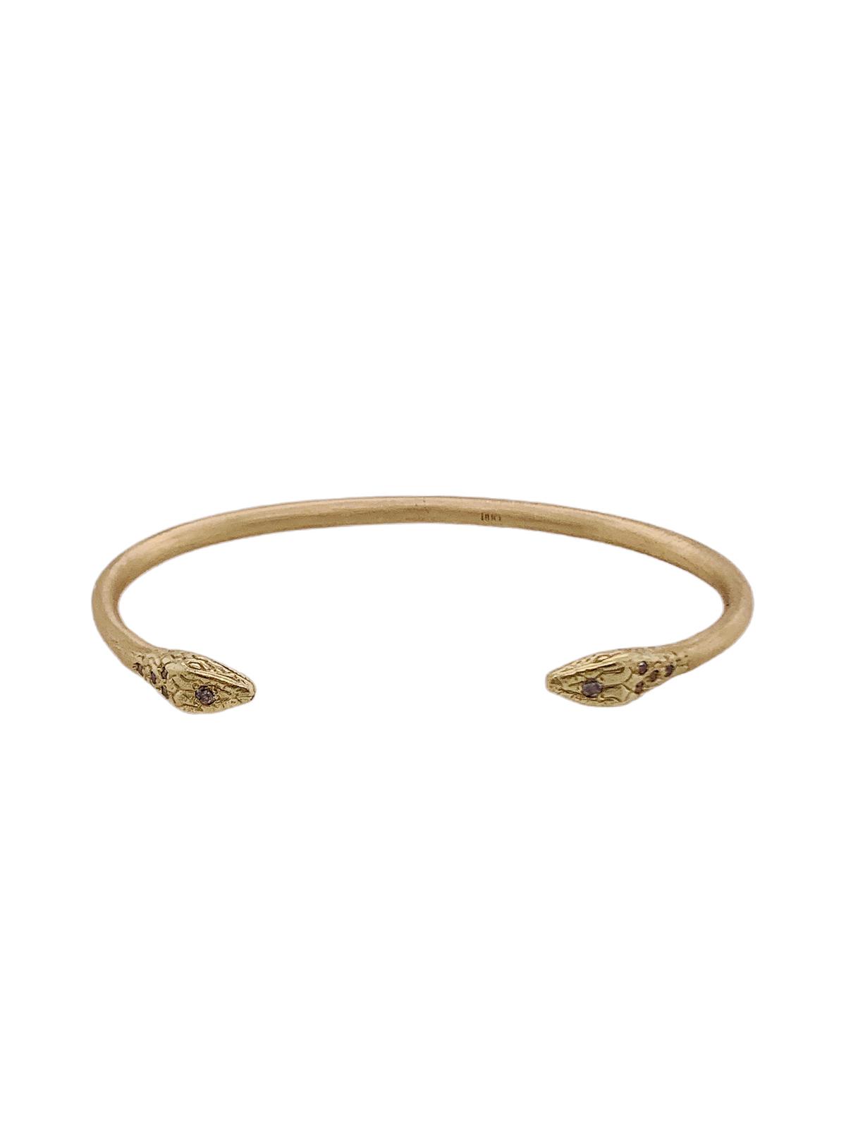 צמיד זהב פתוח אשר בקצוותיו ראשי נחש קוברה מסתכלים האחד לעבר השני ומשובצים יהלומים