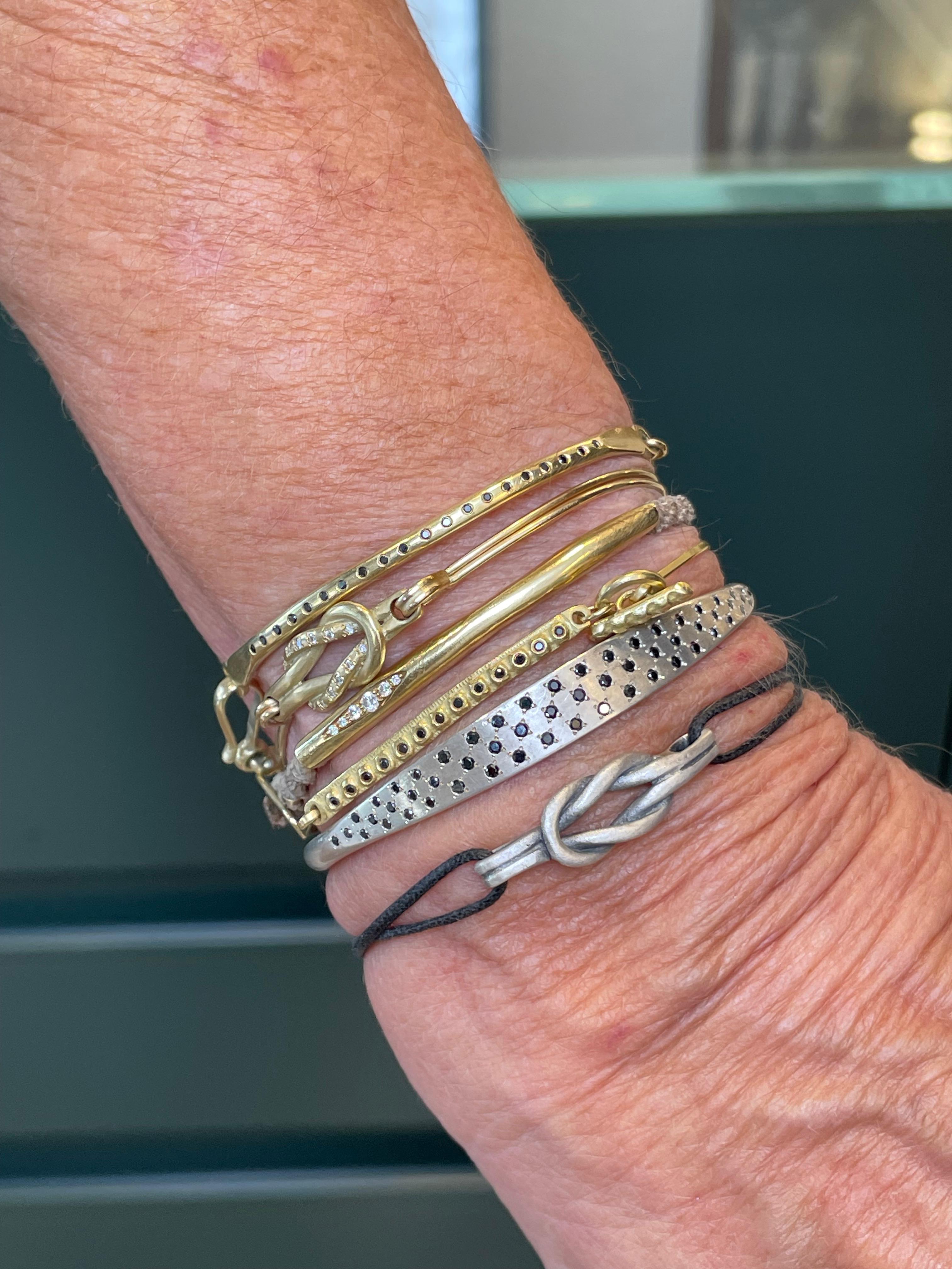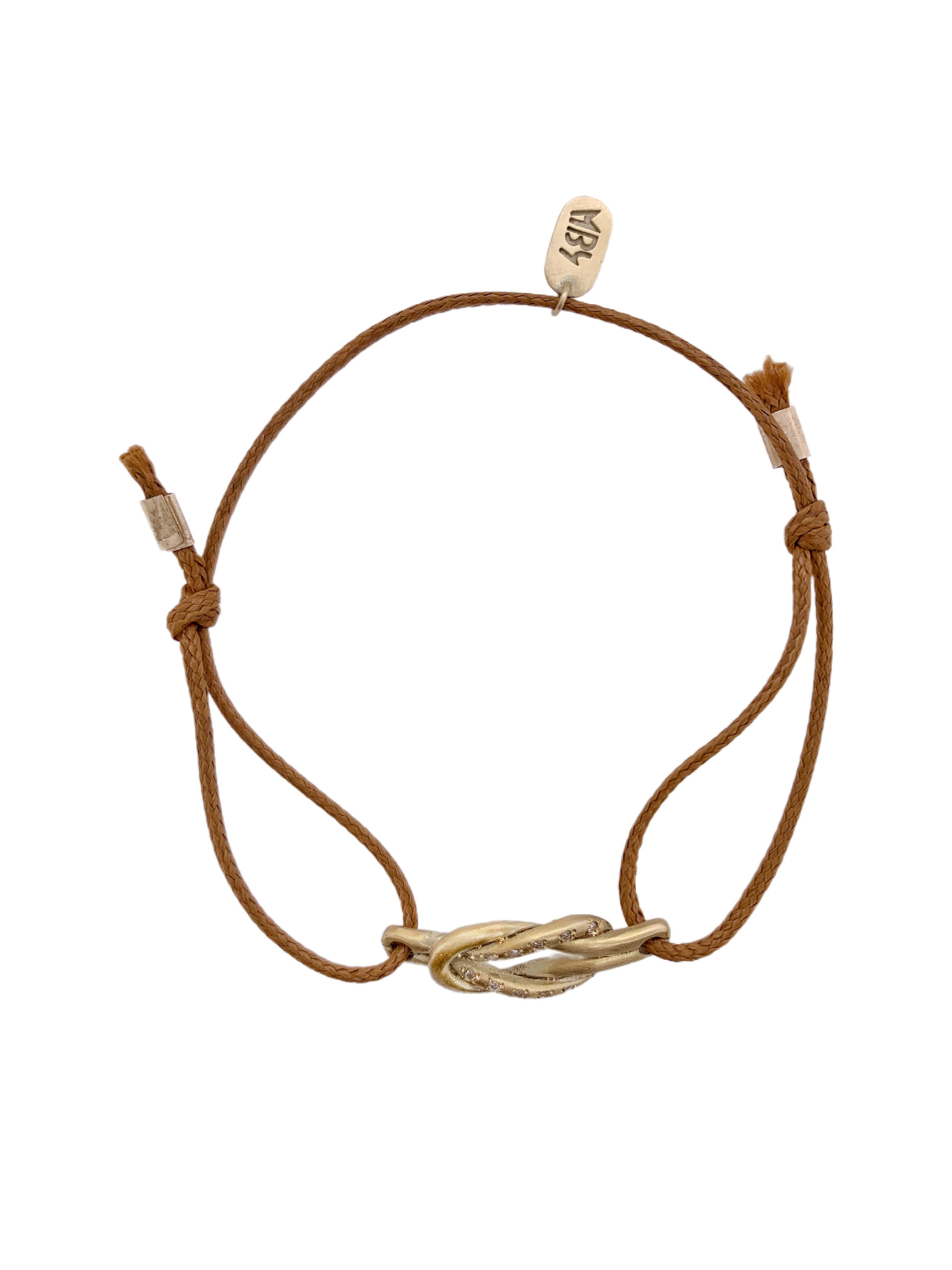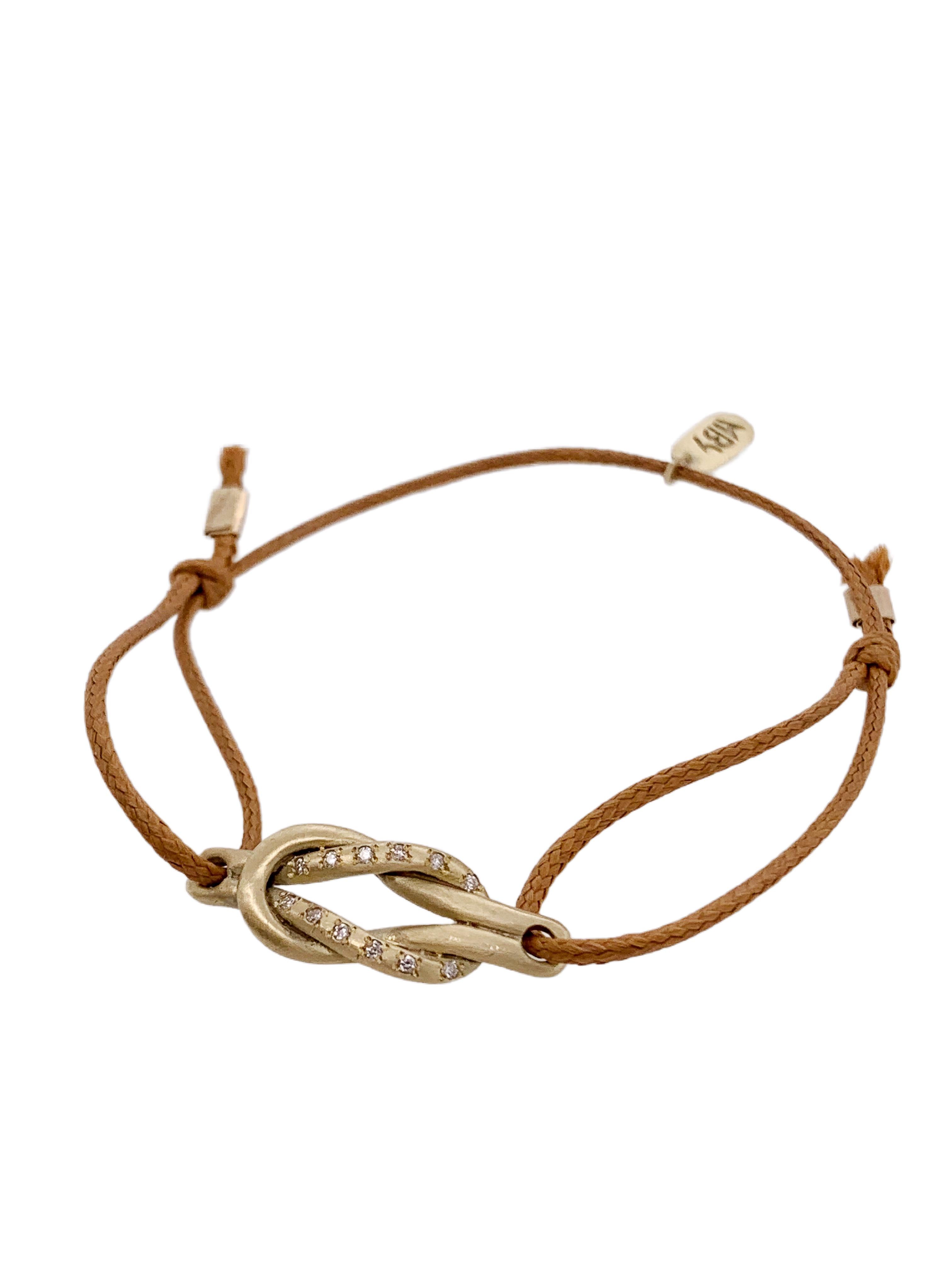 צמיד חוט מתכוונן עם אלמנט בצורת קשר הרקולס מזהב משובץ יהלומים
