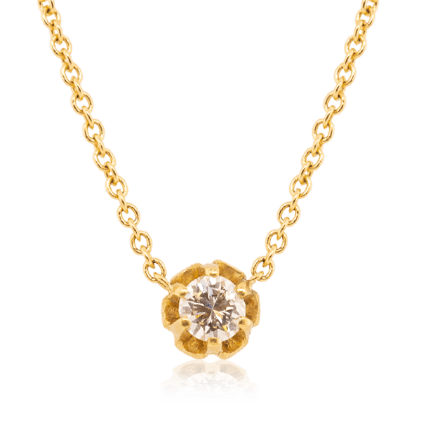 שרשרת זהב צהוב 18 קראט עם תליון בצורת כתר ויהלום מרכזי בוהק