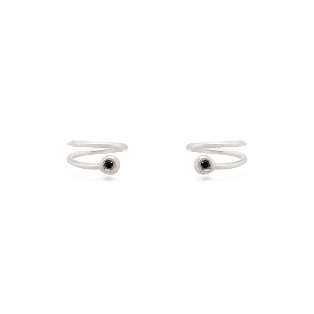 עגיל חישוק הליקס מכסף עם תליון כדור קעור קטן משובץ יהלום שחור. מתאים גם לאף