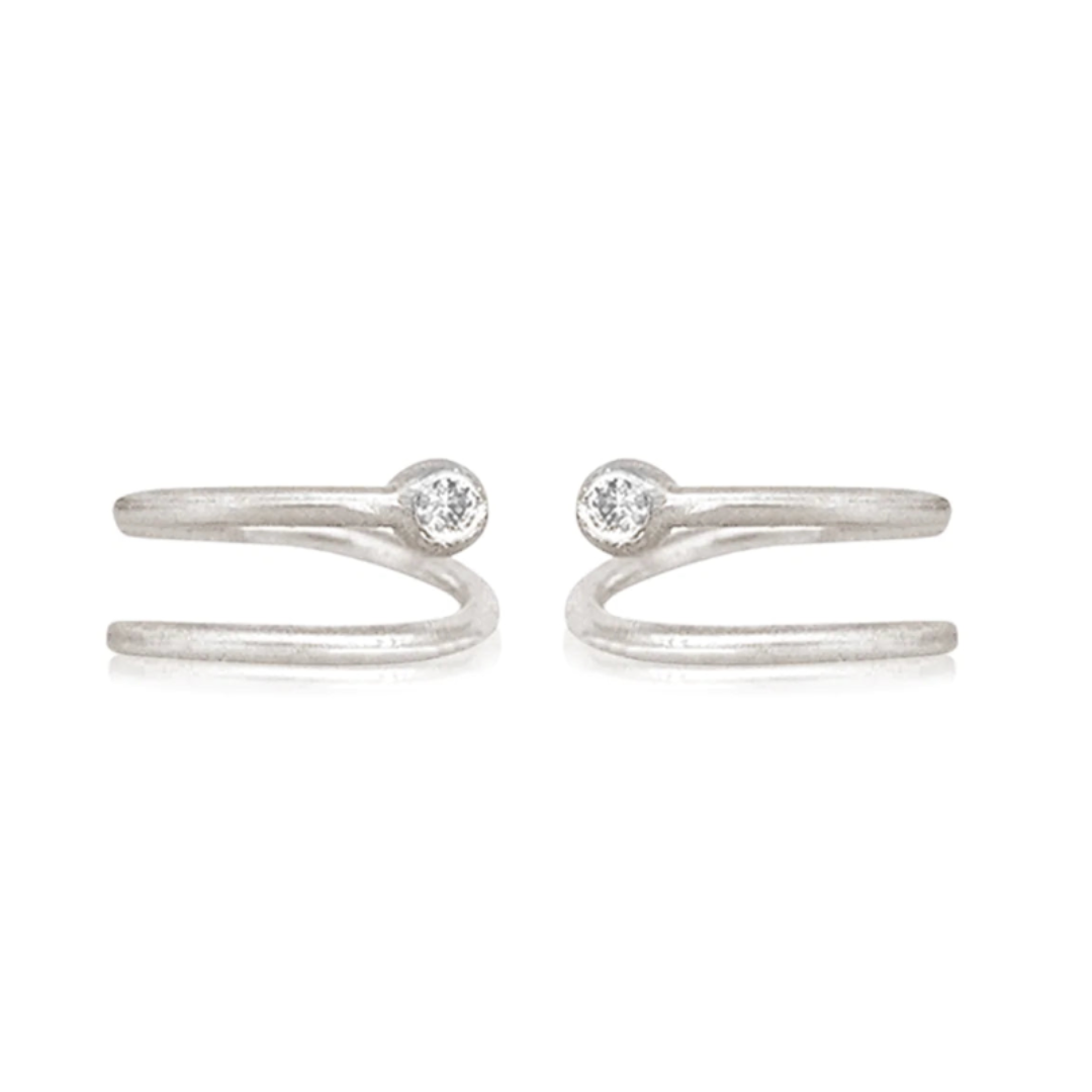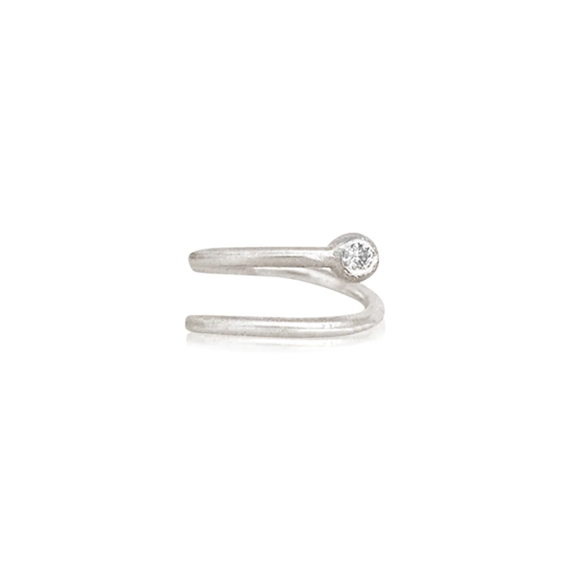 עגיל חישוק מכסף הליקס עם תליון כדור קעור קטן משובץ יהלום. מתאים גם לאף