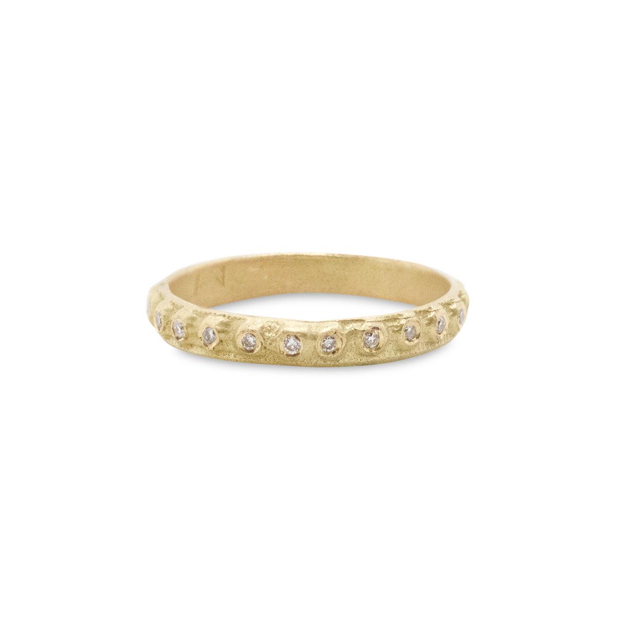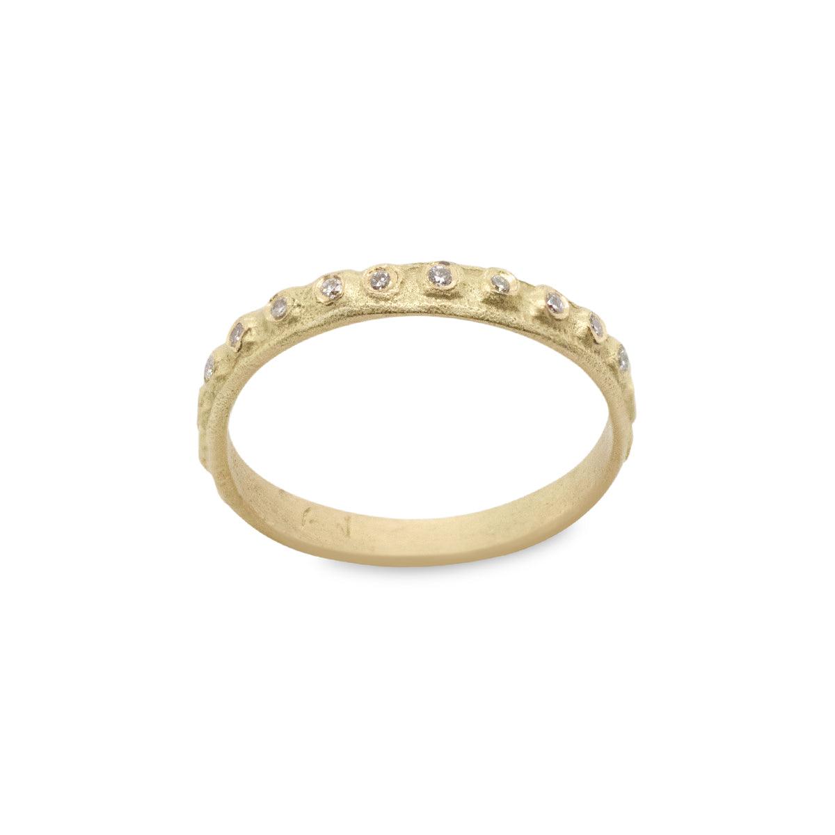 טבעת בסגנון בדואי משובצת 23 יהלומים לבנים. יכולה לשמש כטבעת נישואין