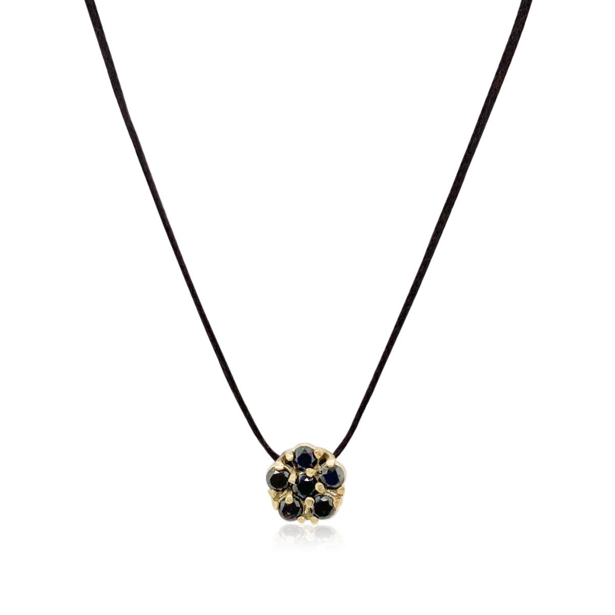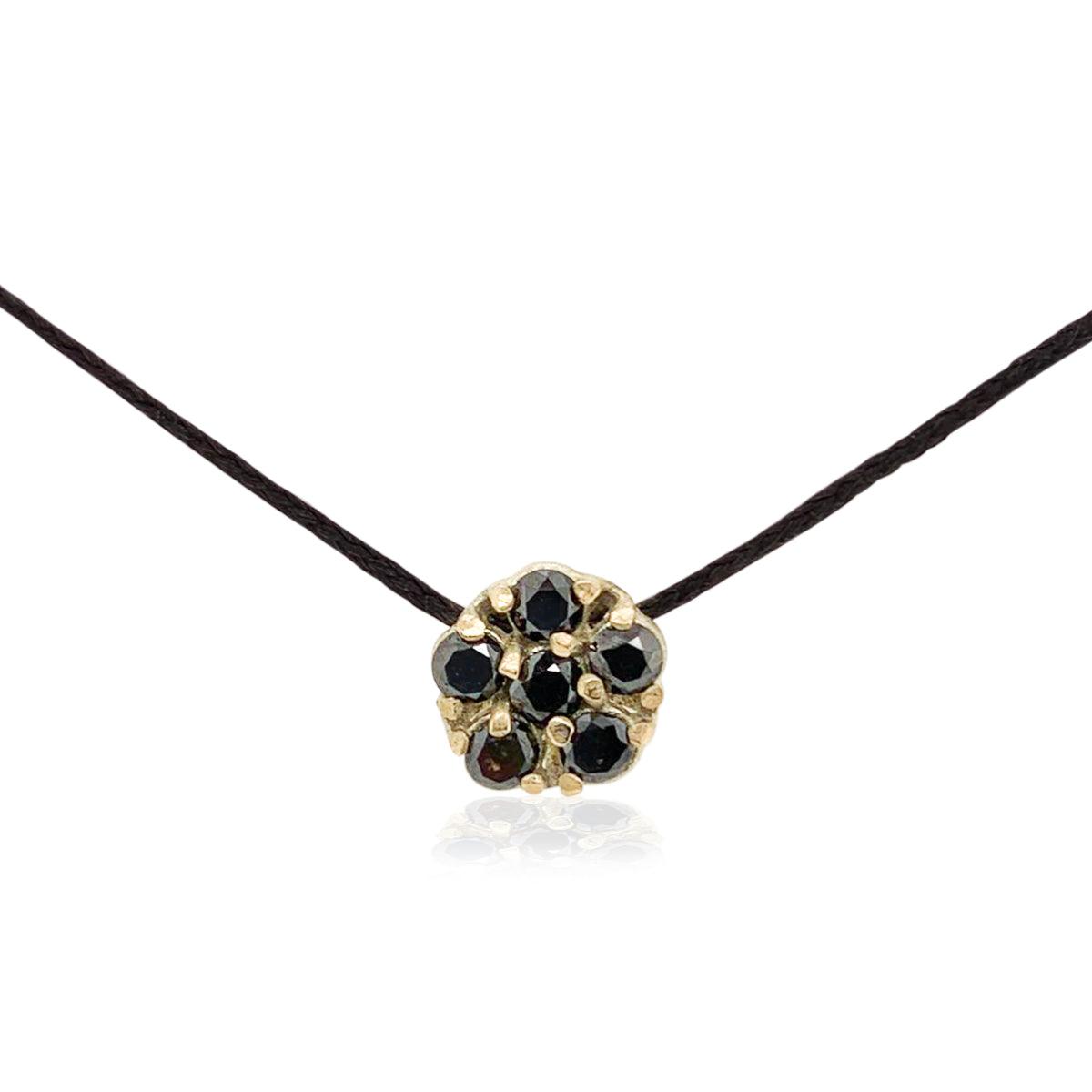 שרשרת שרוך שחור עם תליון חיננית מזהב משובץ 6 יהלומים שחורים