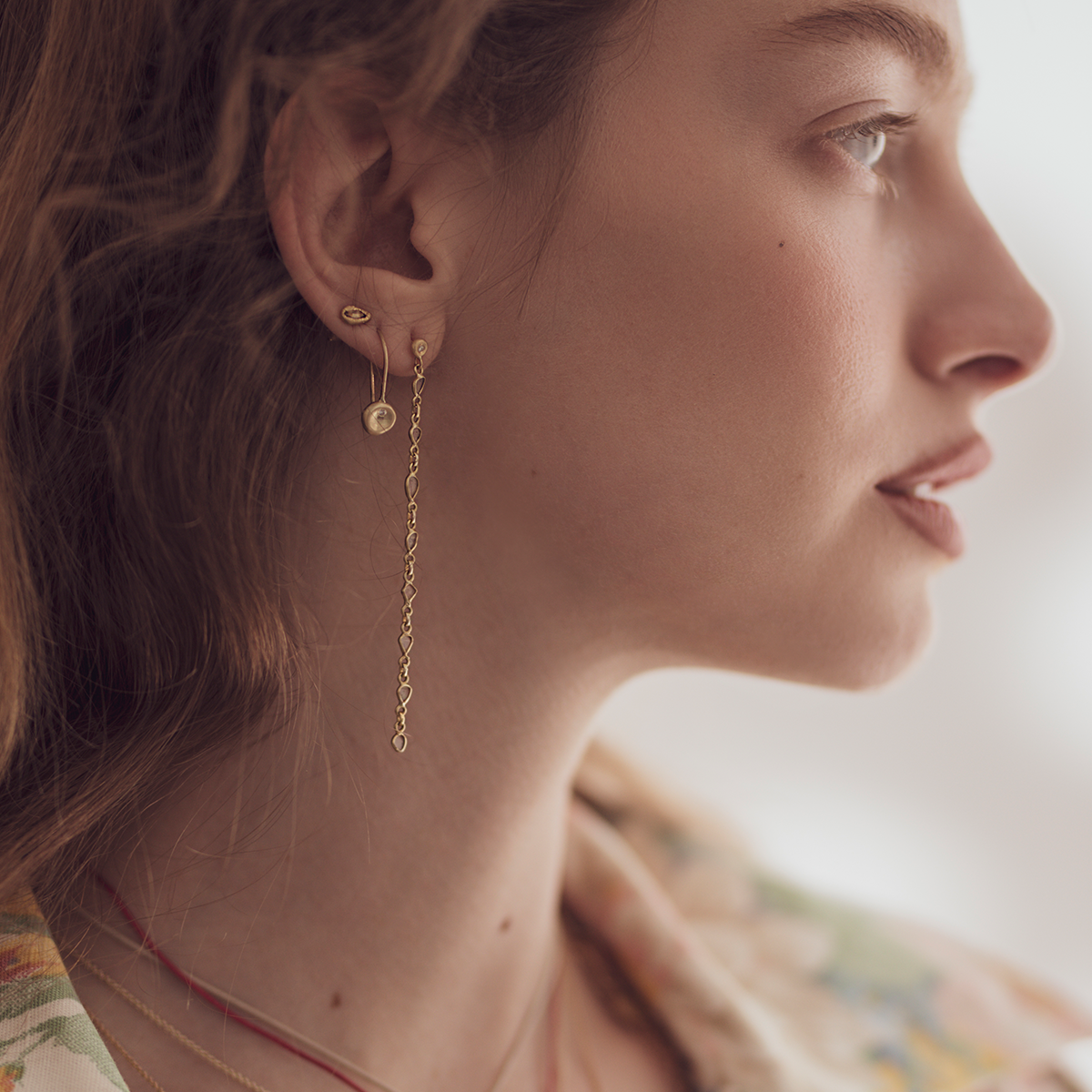עגילים תלויים בעלי תליון עם שקע מרכזי מוקף מעגל, משובץ ביהלום