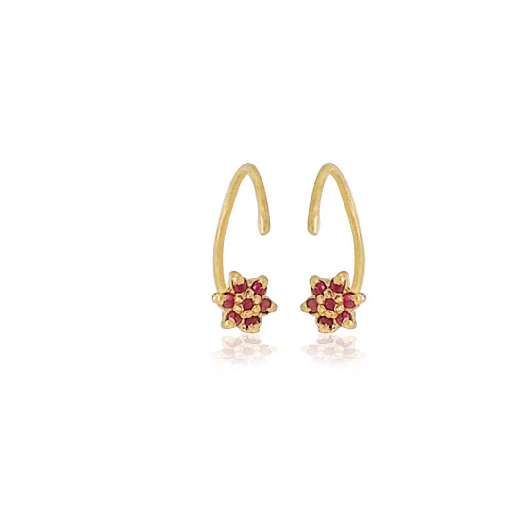 עגיל הליקס חישוק עם תליון פרחים משובץ 7 אבני רובי. יכול להתאים גם לפירסינג באף