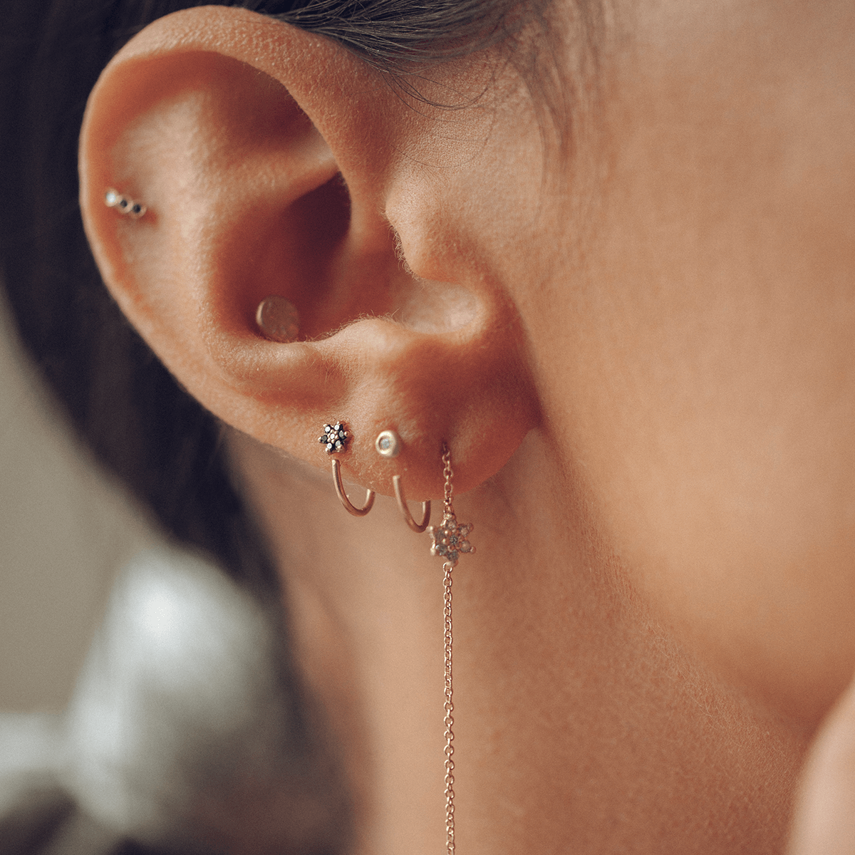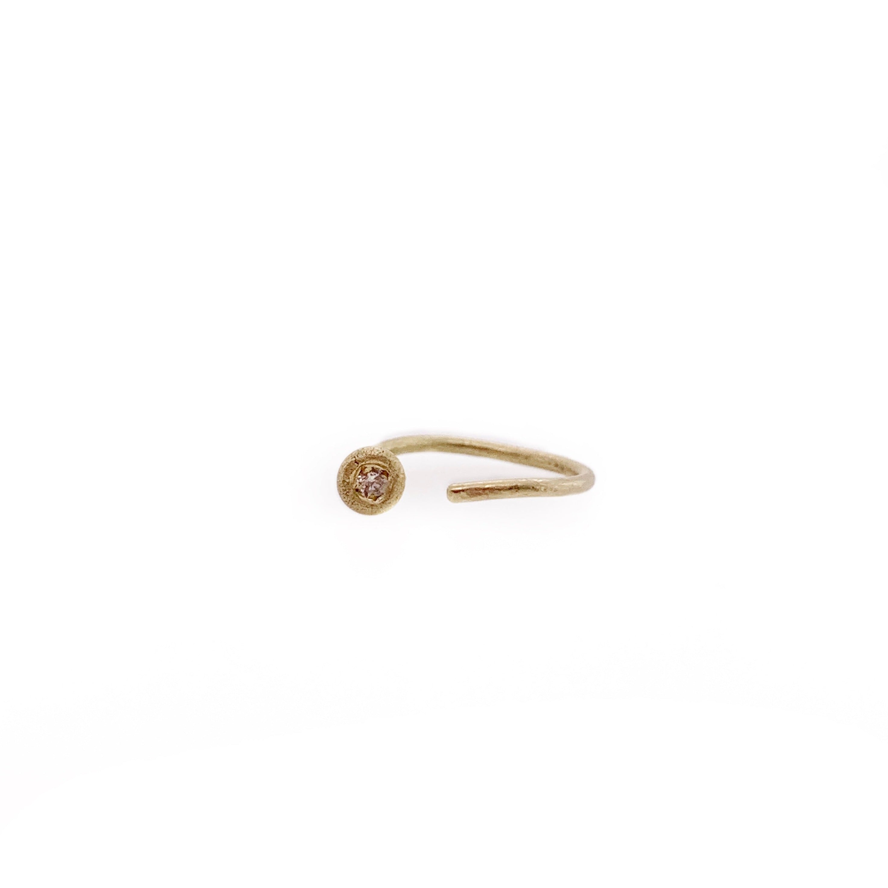 עגיל חישוק הליקס עם תליון כדור קעור קטן משובץ יהלום לבן. מתאים גם לאף