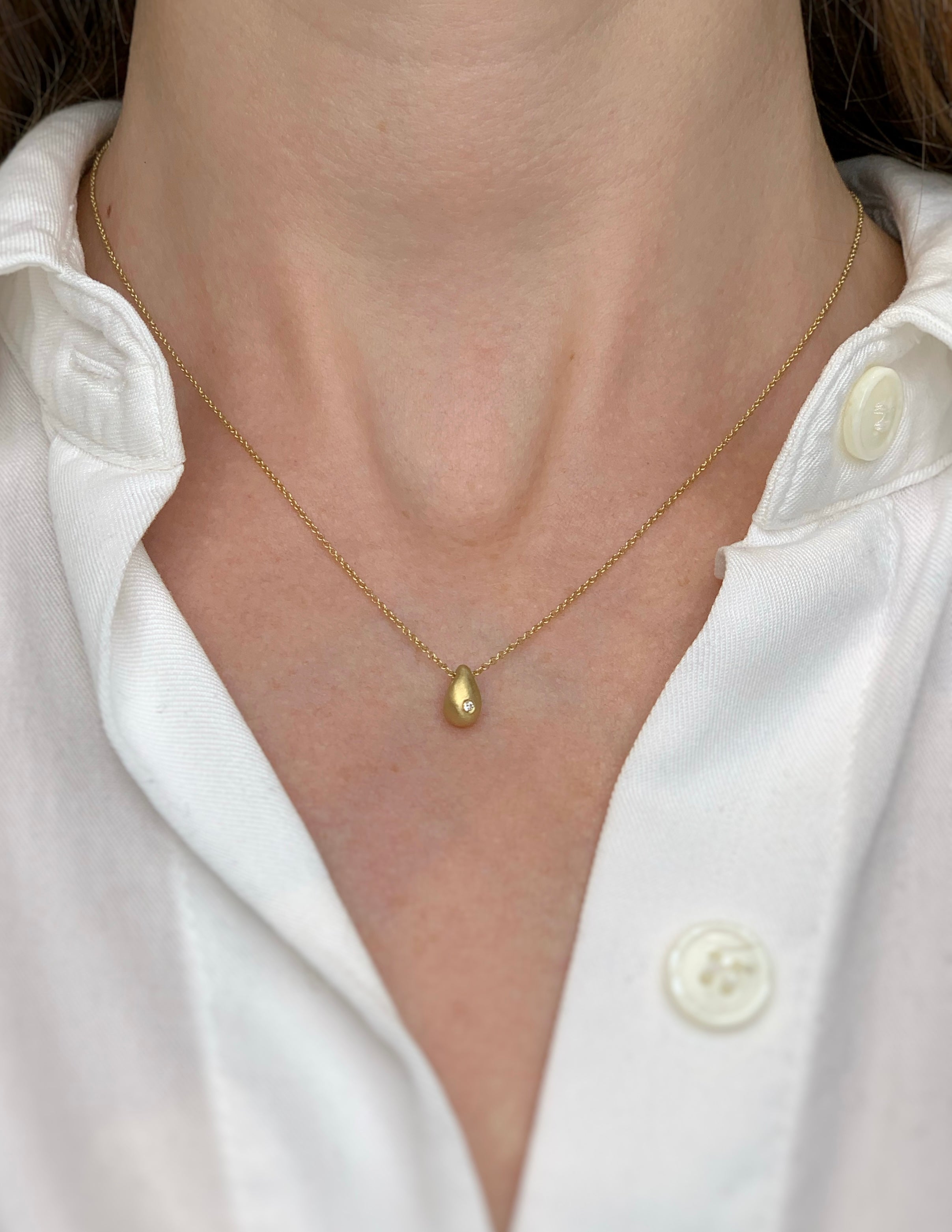 שרשרת זהב צהוב 18 קראט עם תליון בצורת טיפה, משובצת ביהלום