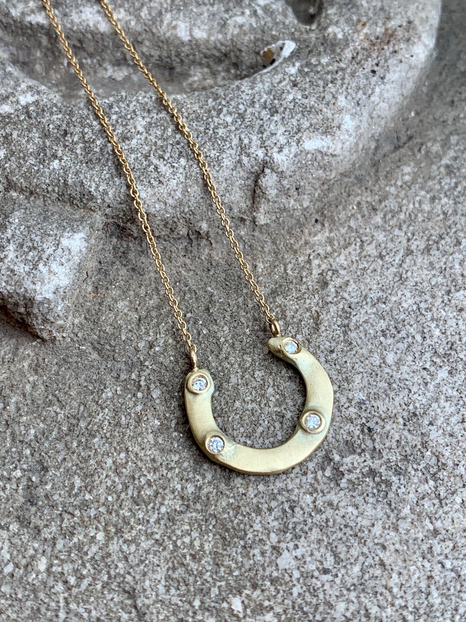 שרשרת זהב עם תליון פרסה משובץ 4 יהלומים