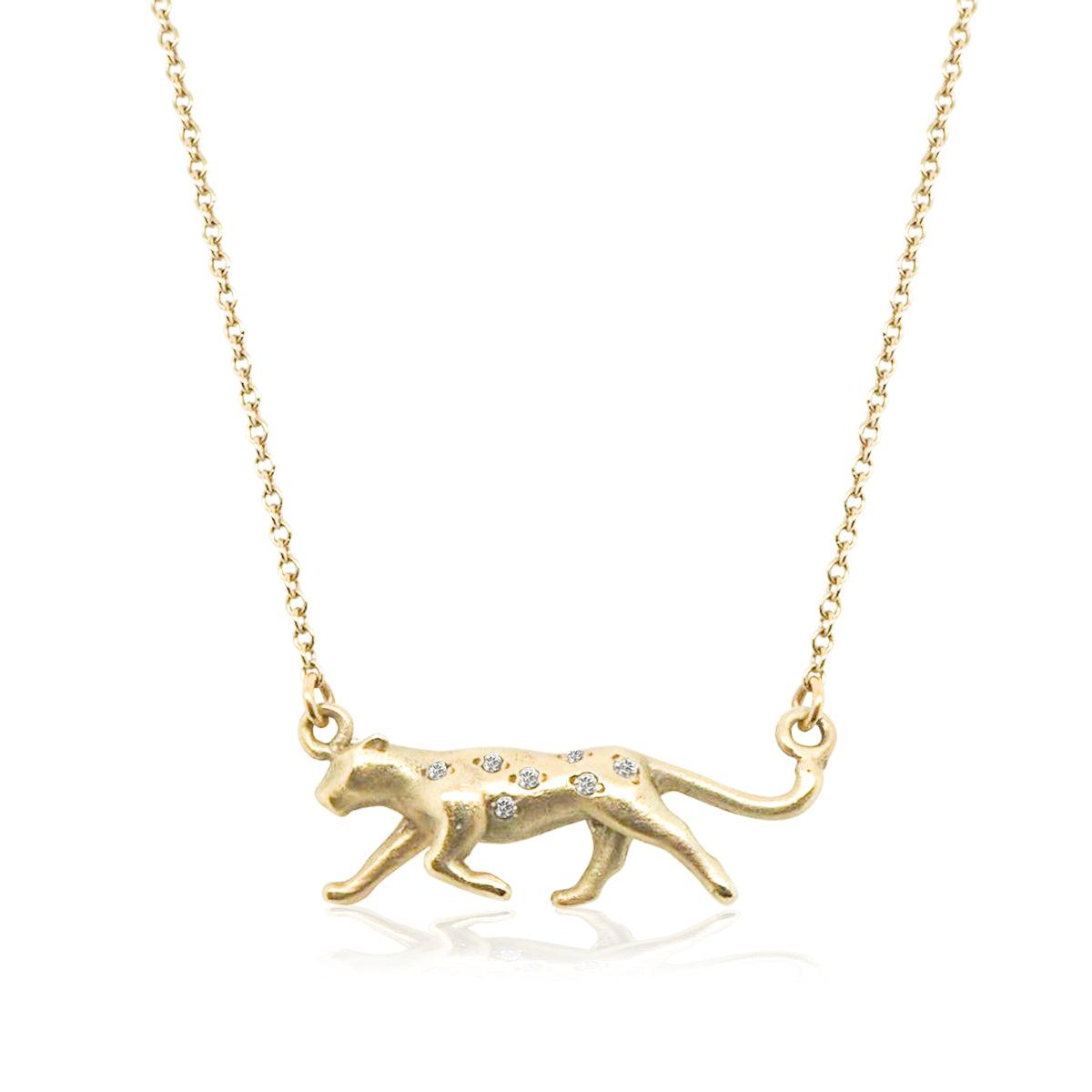 שרשרת זהב צהוב 14 קראט עם תליון בצורת פנתרה משובץ יהלומים