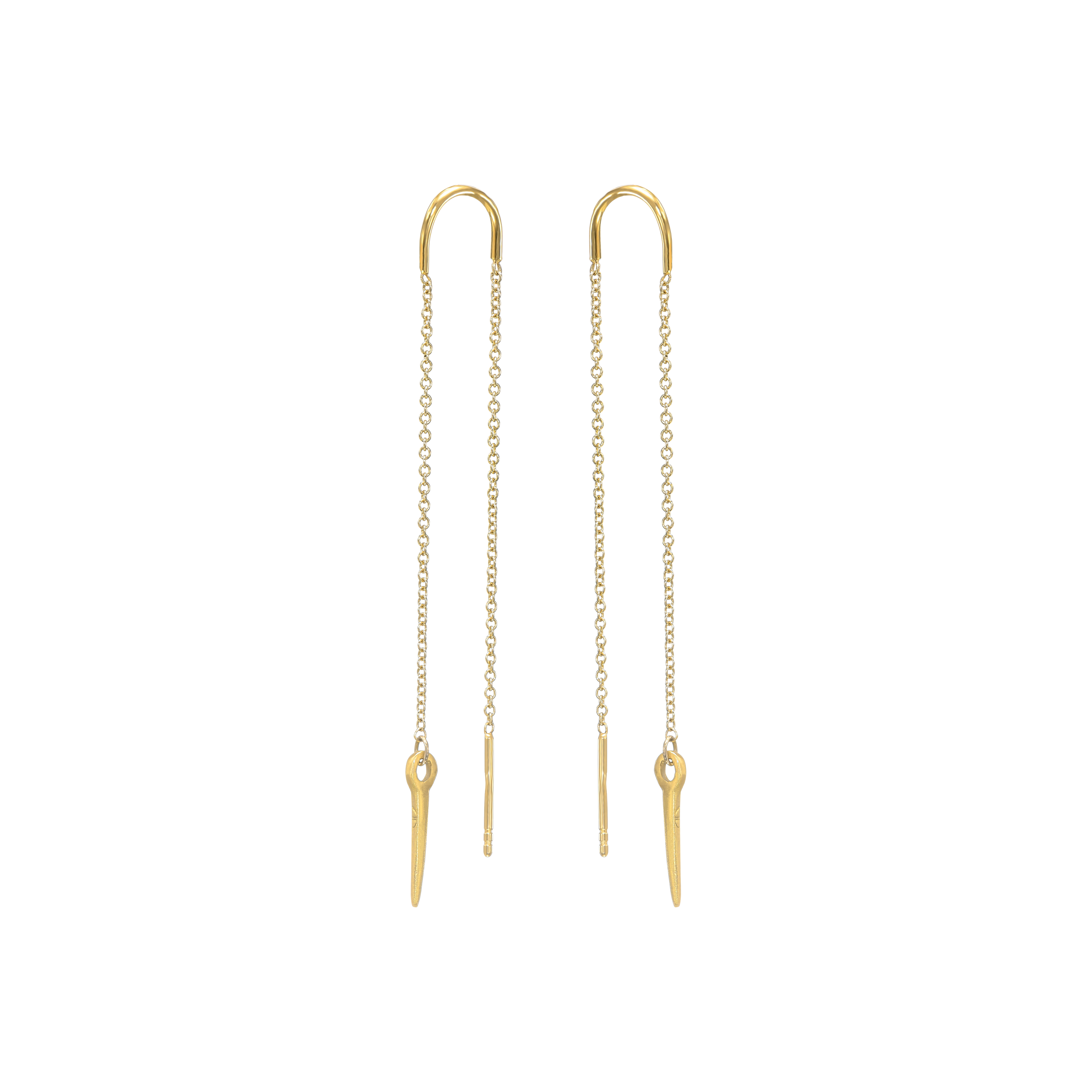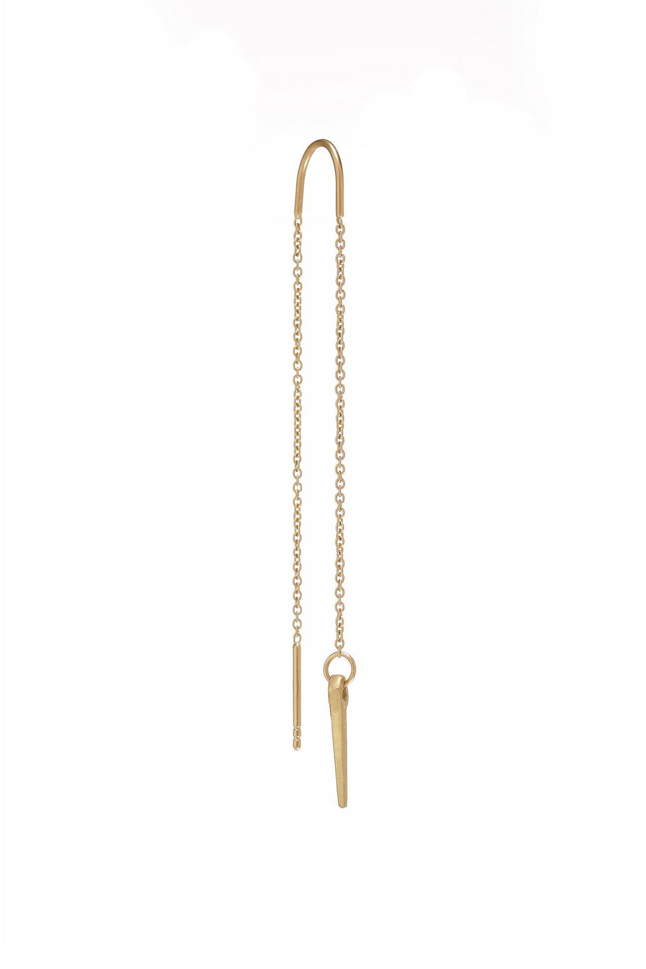 עגיל שרשרת זהב קצר דו צדדי עם אלמנט בצורת מחט תלוי בצד אחד