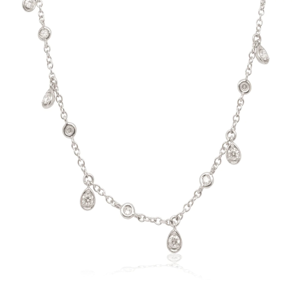 שרשרת קולר מזהב לבן עם טיפות יהלומים