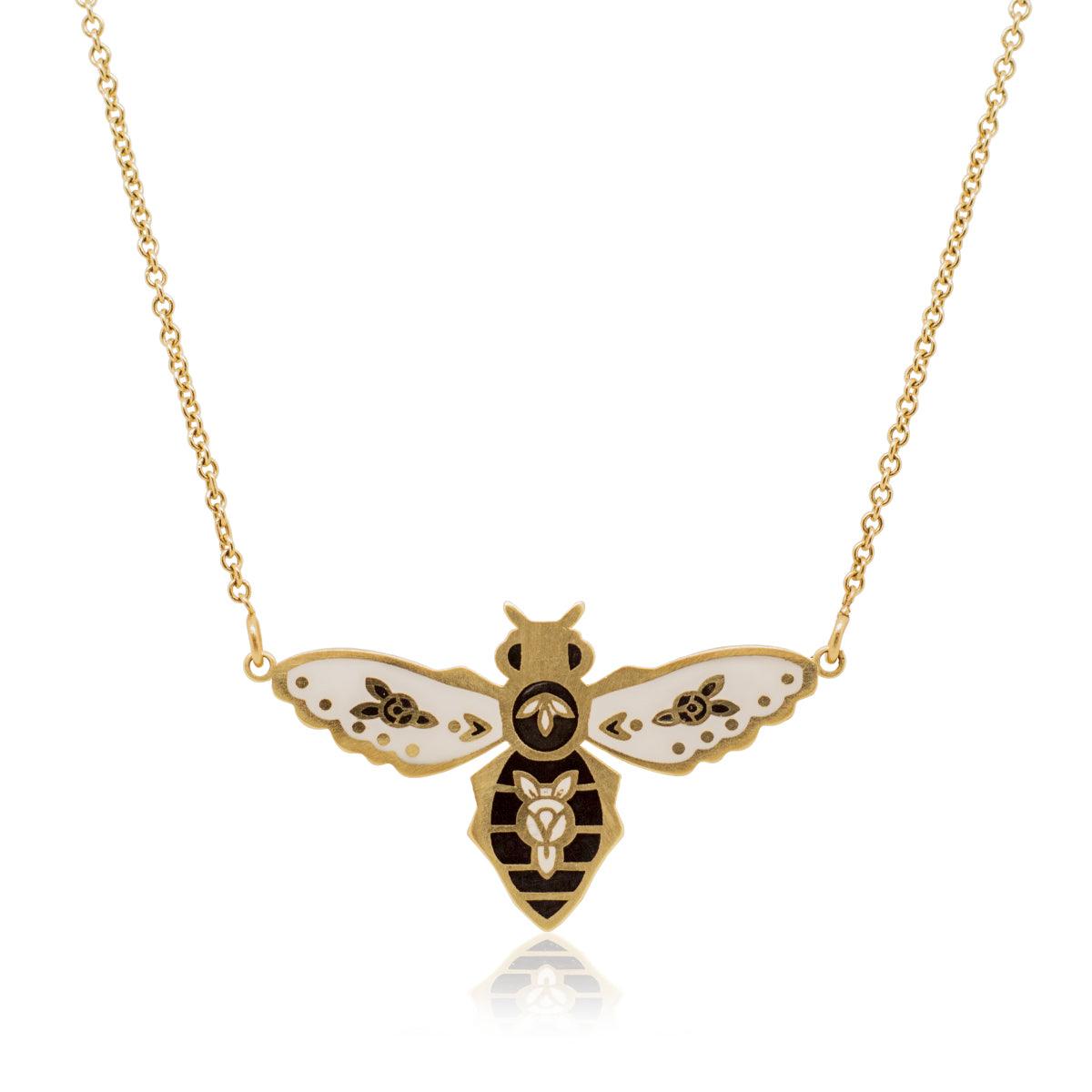 שרשרת זהב צהוב עם תליון דבורה מאמייל