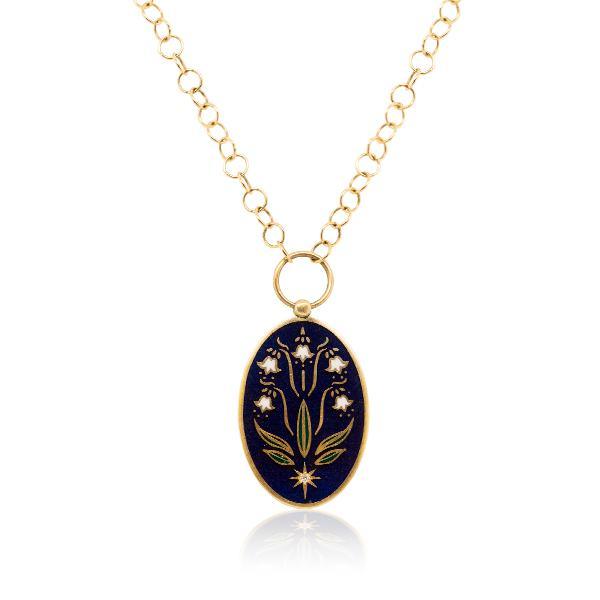 שרשרת זהב צהוב 14 קראט עם תליון אמייל 5 פרחים משובץ יהלומים