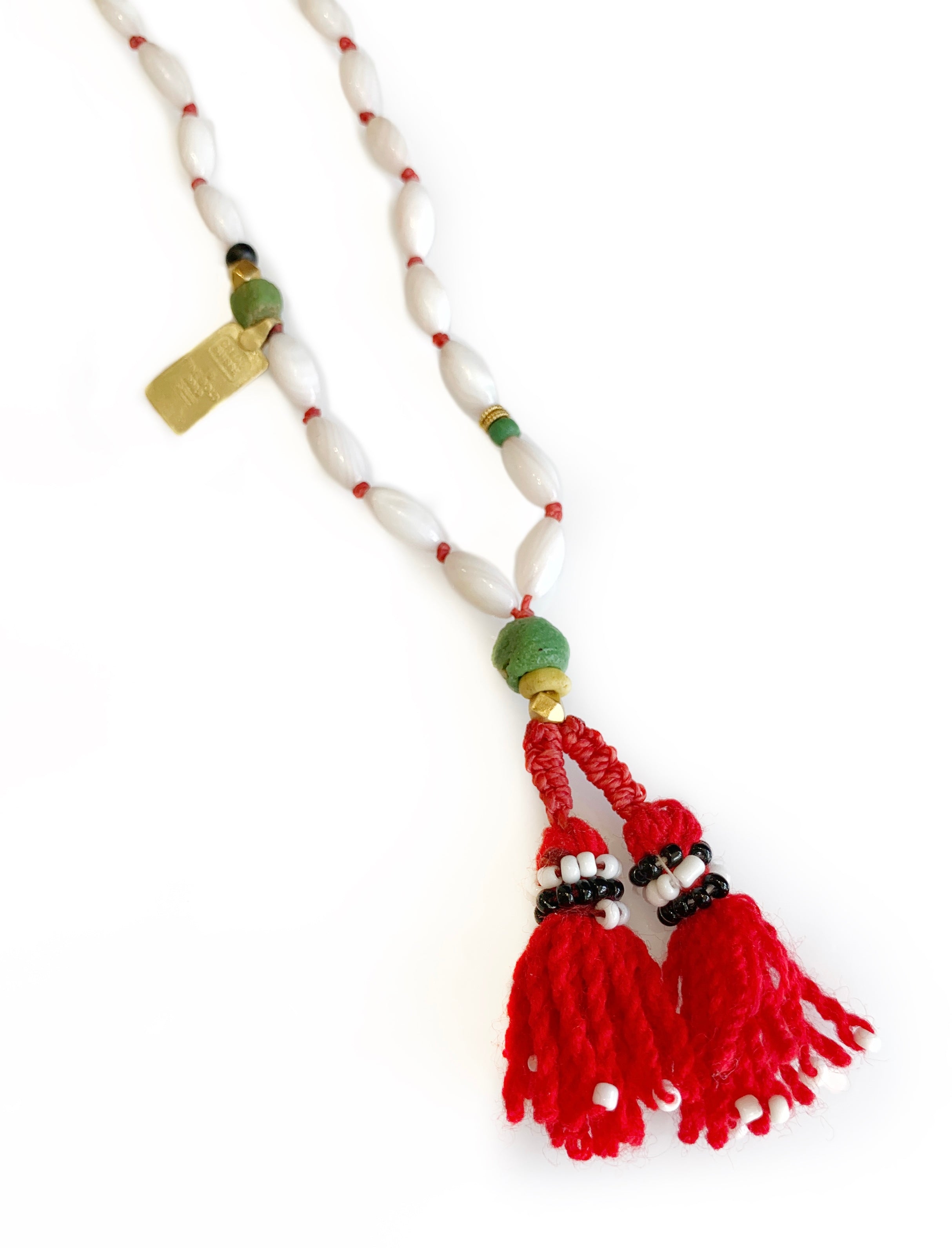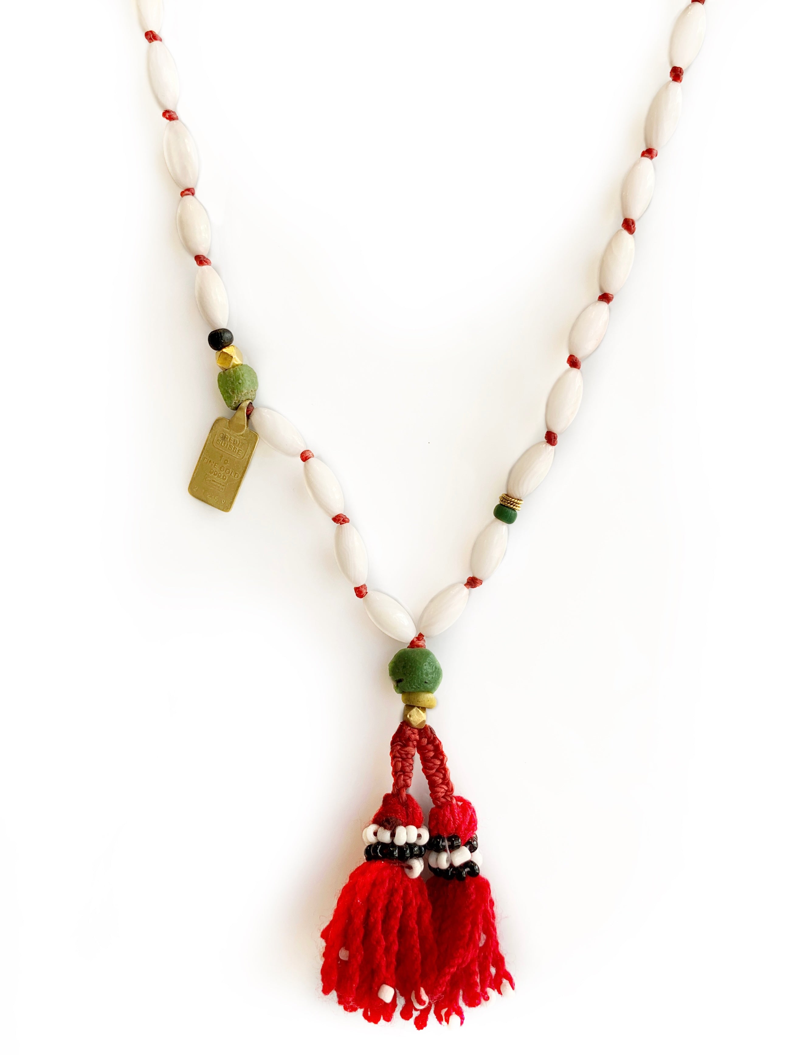 מחרוזת מאלה לבנה עם פנינים, משולבת חרוזים עתיקים, אוניקס וחרוזי זהב