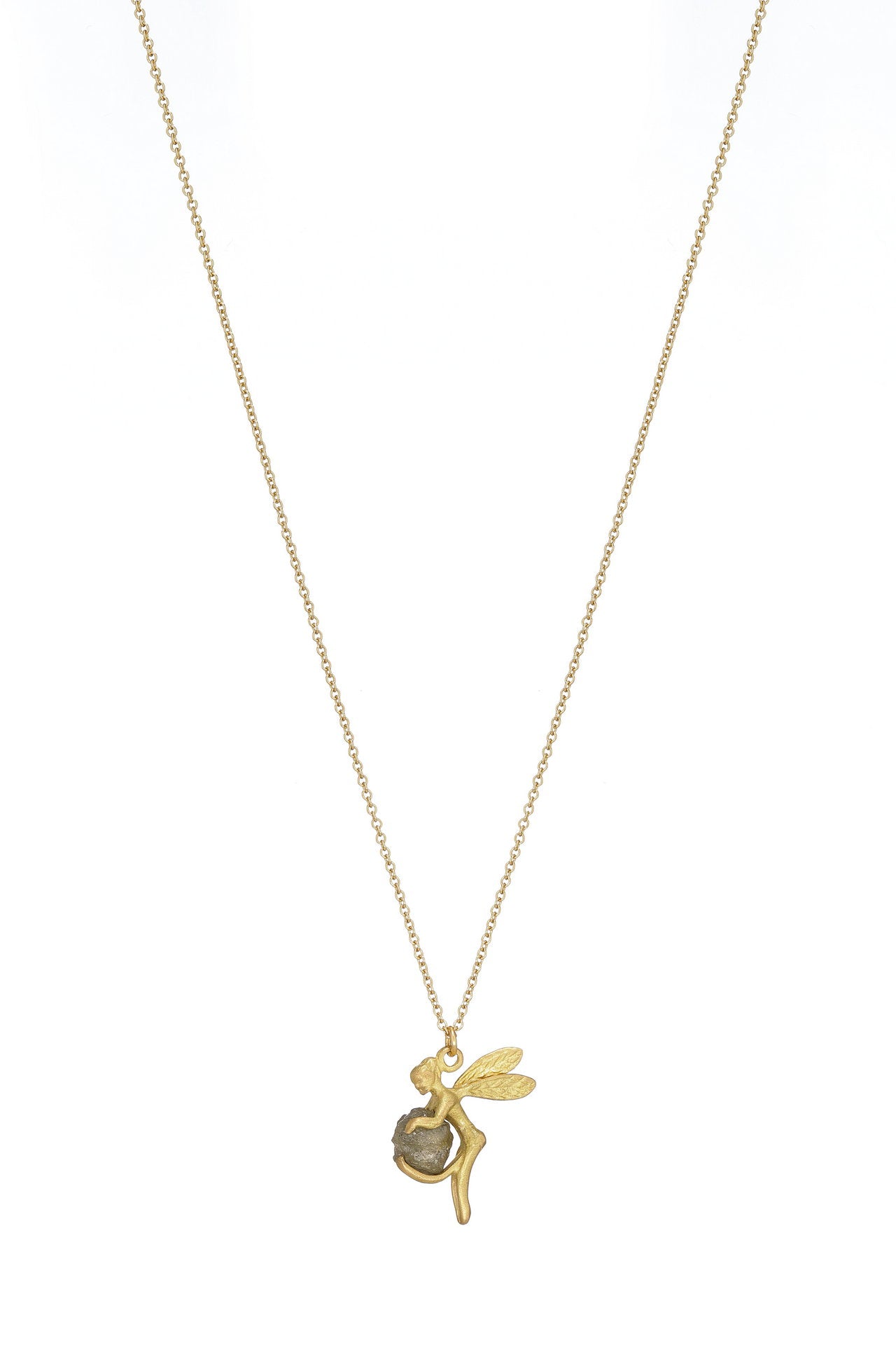 שרשרת זהב 14 עם תליון פיה משובץ יהלום גולמי