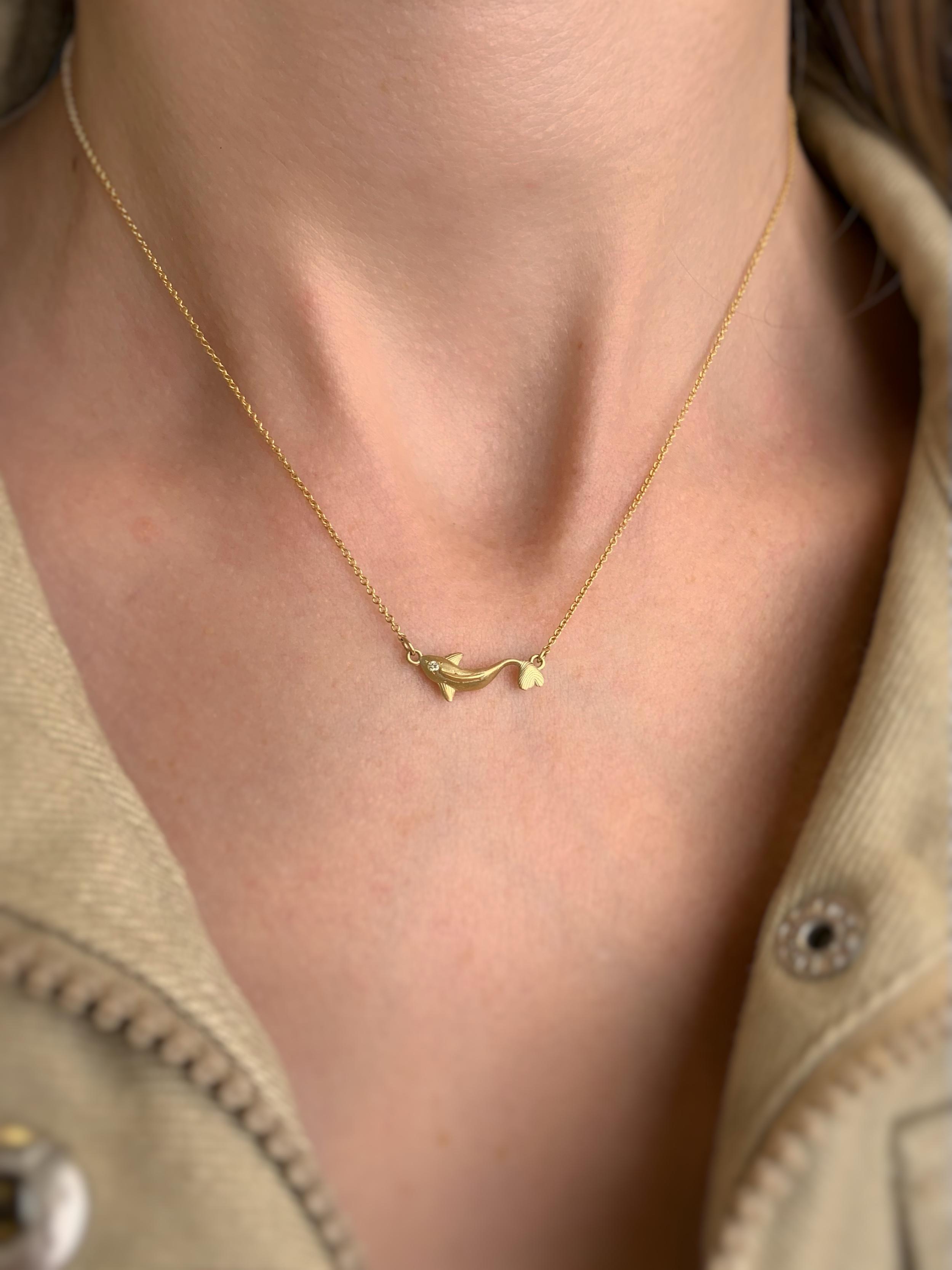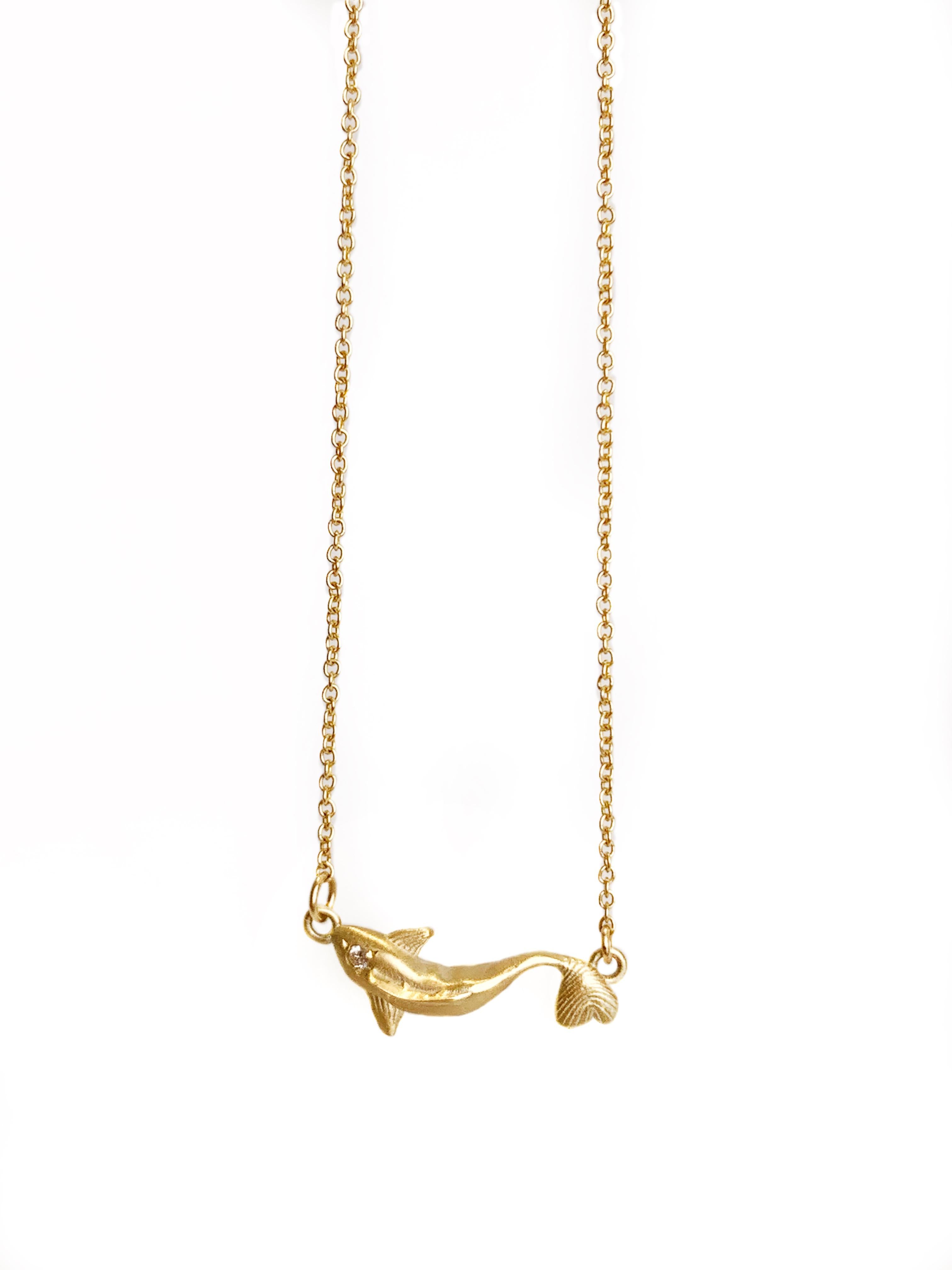 שרשרת זהב עם תליון דג קוי משובץ יהלום