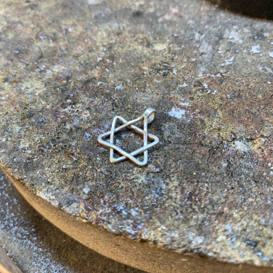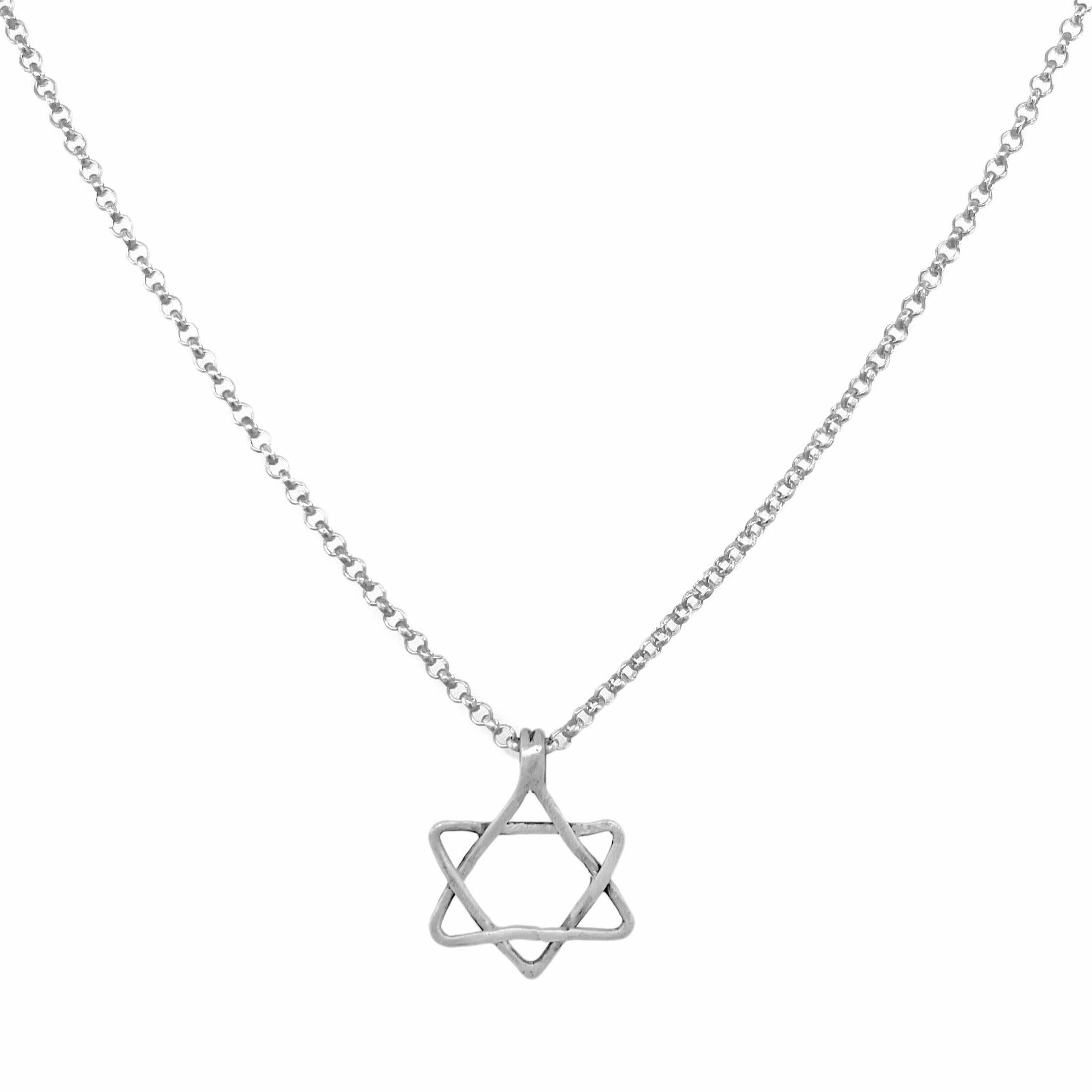 מגן דוד מפוסל בכסף, תלוי על שרשרת כסף באורך 45 ס״מ