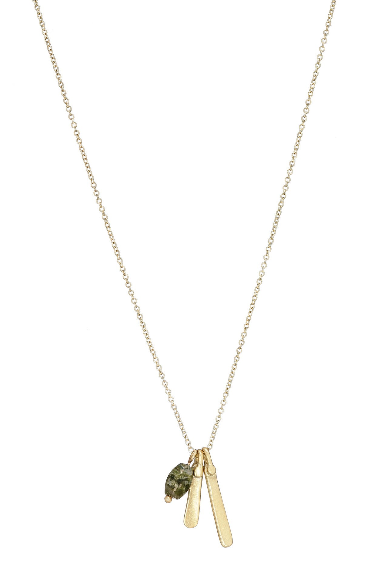 שרשרת זהב עם שני תליוני משוטים מזהב בגדלים שונים וחרוז אגת תלוי על חוט זהב