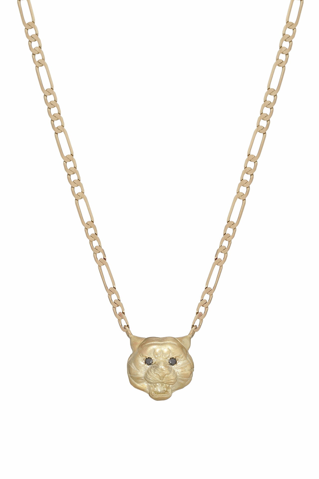 שרשרת לולאות מזהב עם תליון ראש נמר בשיבוץ יהלומים שחורים