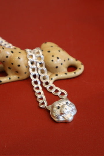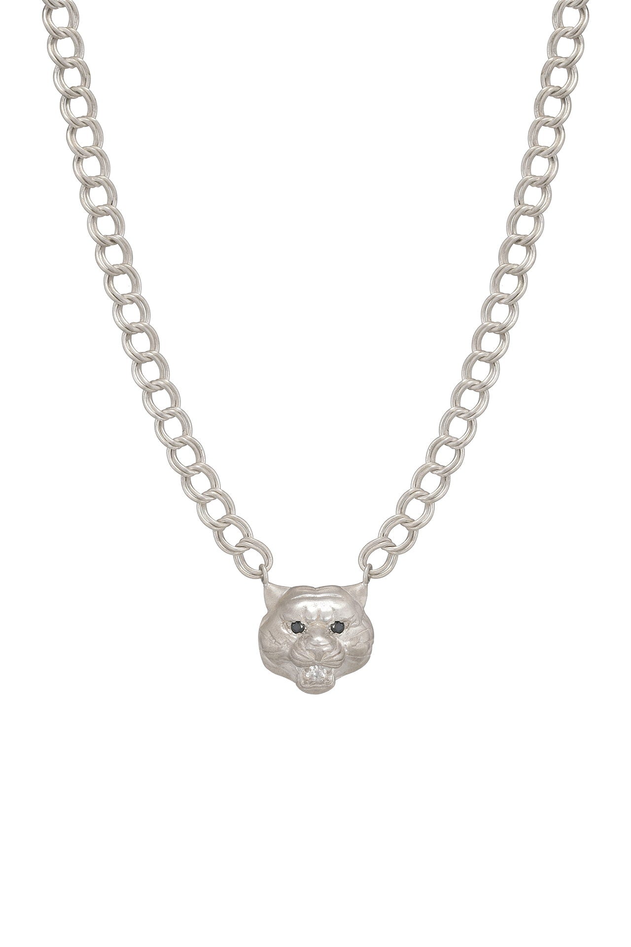 שרשרת לולאות מכסף עם תליון ראש נמר בשיבוץ יהלומים שחורים