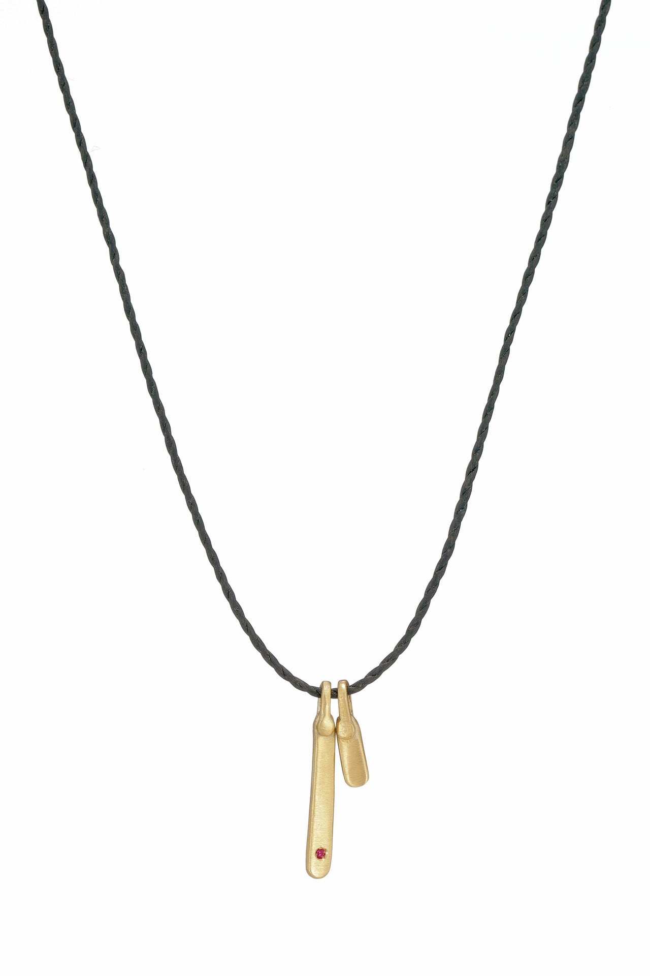 שרשרת זהב עם שני תליוני משוטים מזהב בגדלים שונים, אחד מהם משובץ באבני רובי