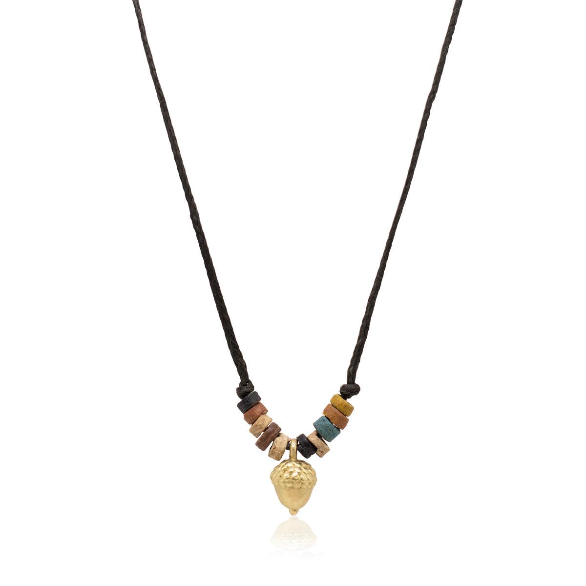 שרשרת שרוך עם תליון בלוט זהב בשילוב חרוזים עתיקים
