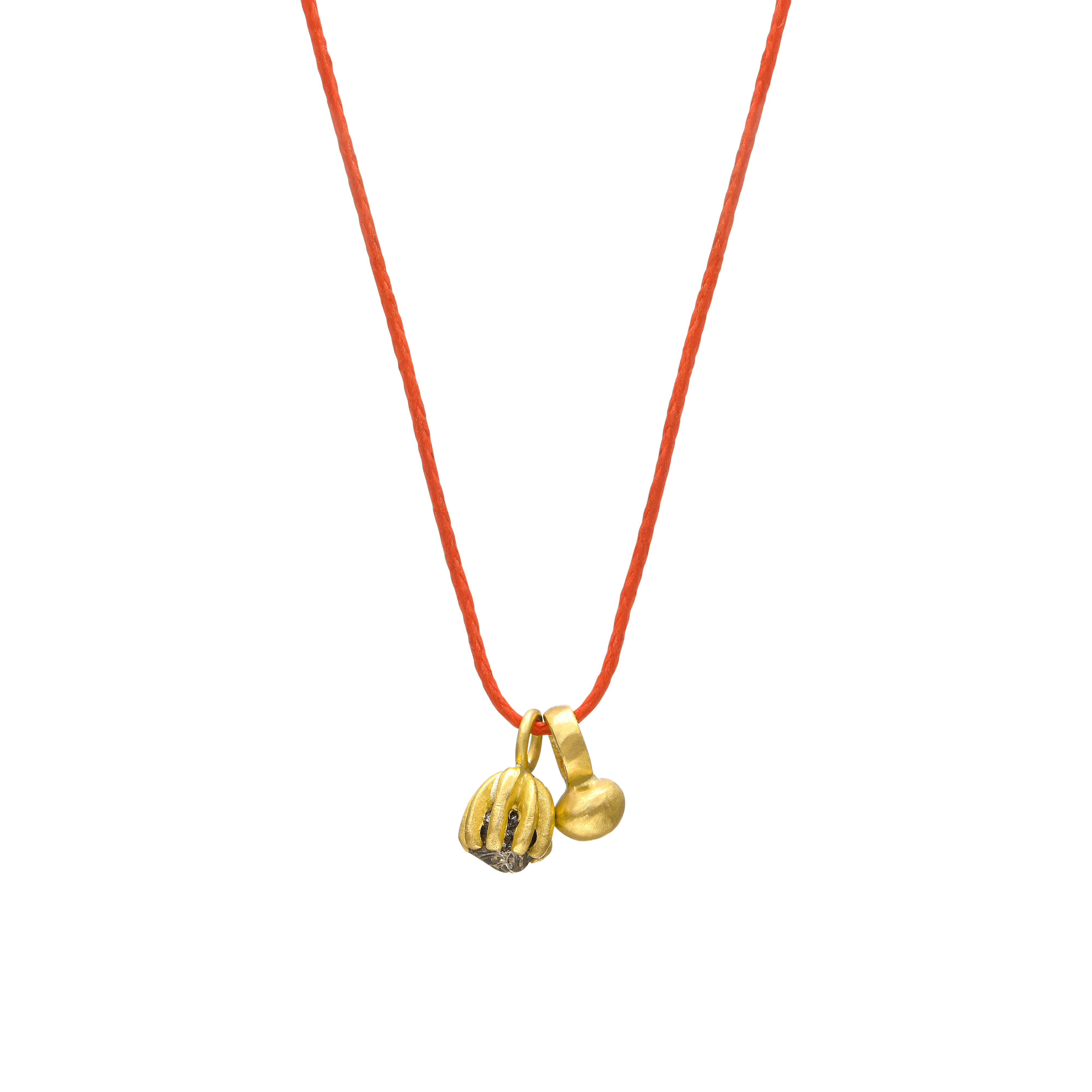 שרשרת שרוך עם אלמנט פעמון זהב ותליון פריחה משובץ יהלום גולמי