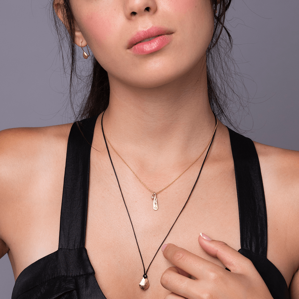 שרשרת עשויה חוט שעווה מתכוונן וסוגר מזהב. התליון הוא טיפת זהב בעיבוד המדמה גביש קריסטל. תכשיט יוניסקס שמשתלב עם כל דבר ומקפיץ את ההופעה