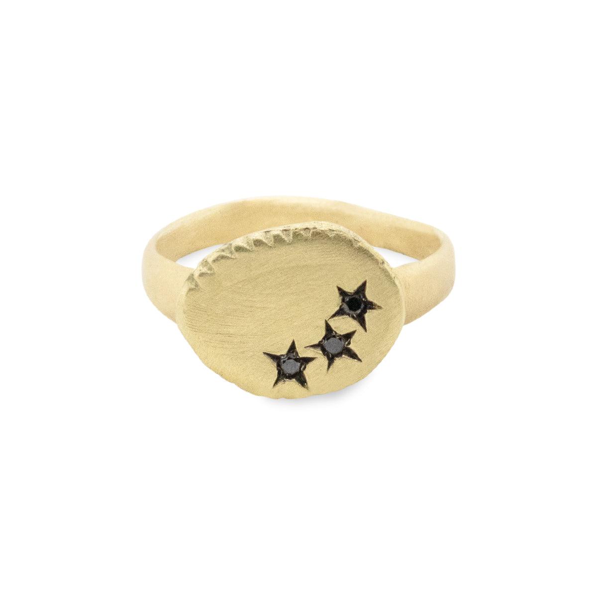 טבעת חותם אובלית עם שלושה כוכבים משובצים יהלומים. שילוב ייחודי של סגנון מסורתי ומודרני