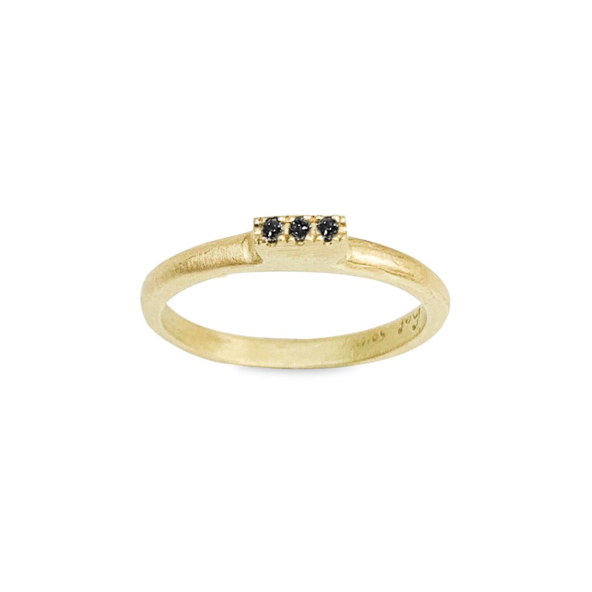 טבעת זהב צרה עם לוחית מוגבהת משובצת 3 יהלומים שחורים