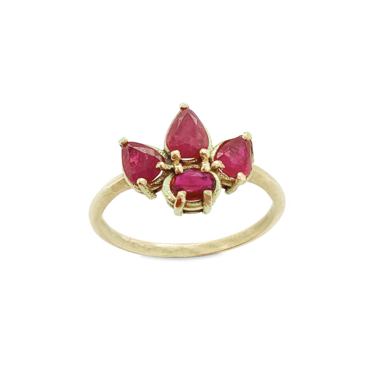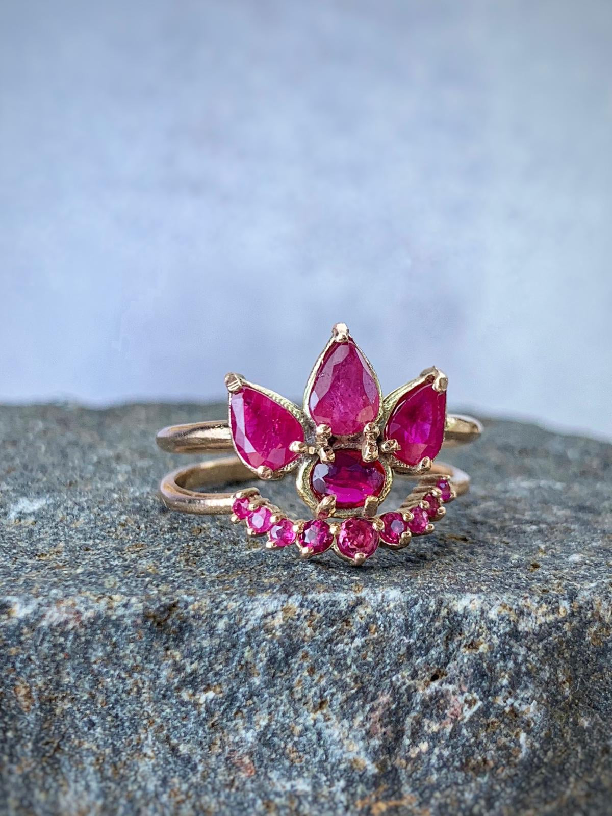 טבעת לוטוס מזהב משובצת אבני אודם. טבעת זו מסמלת כוח והארה