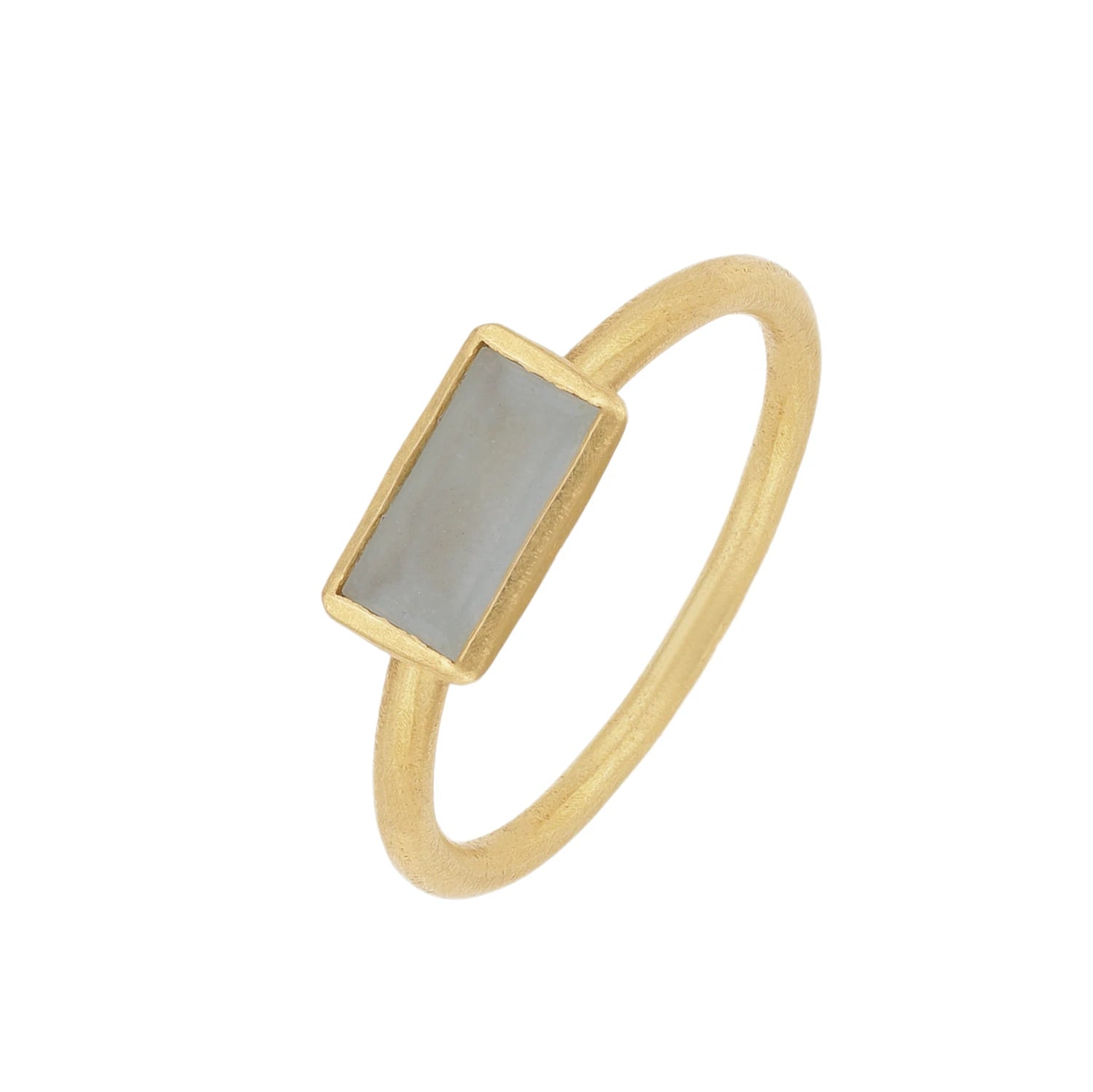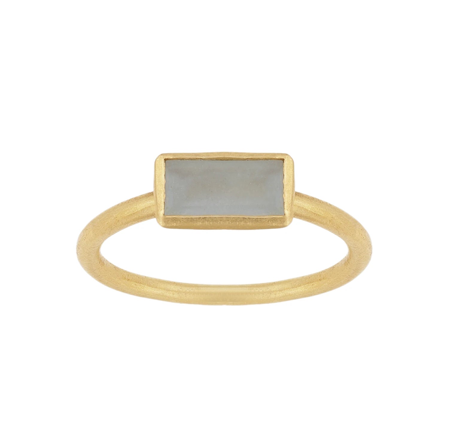 מלבן דק ומוארך על גבי טבעת דקה, משובץ באקווהמרין