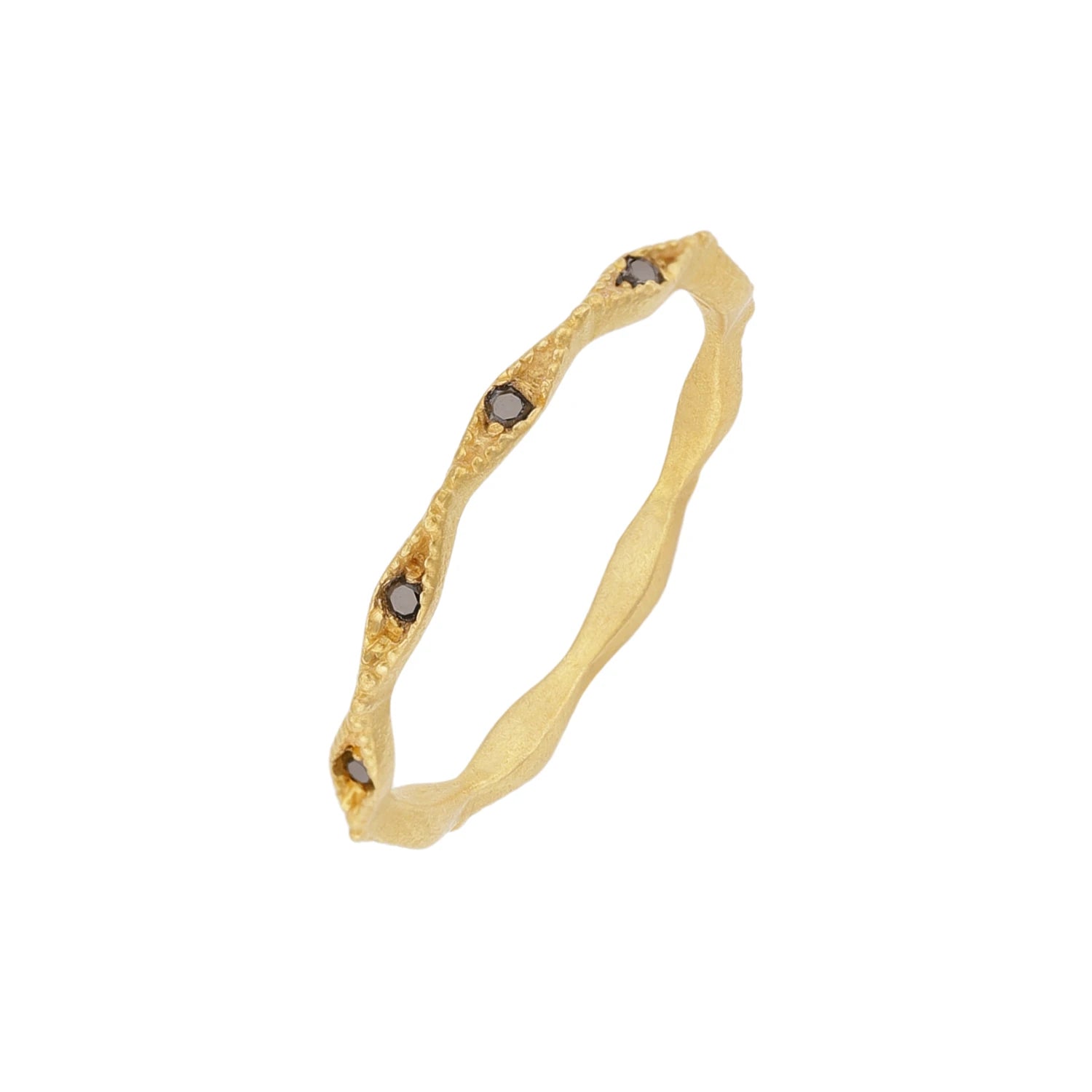 טבעת זהב עם 9 מעוינים קטנים משובצים יהלומים שחורים